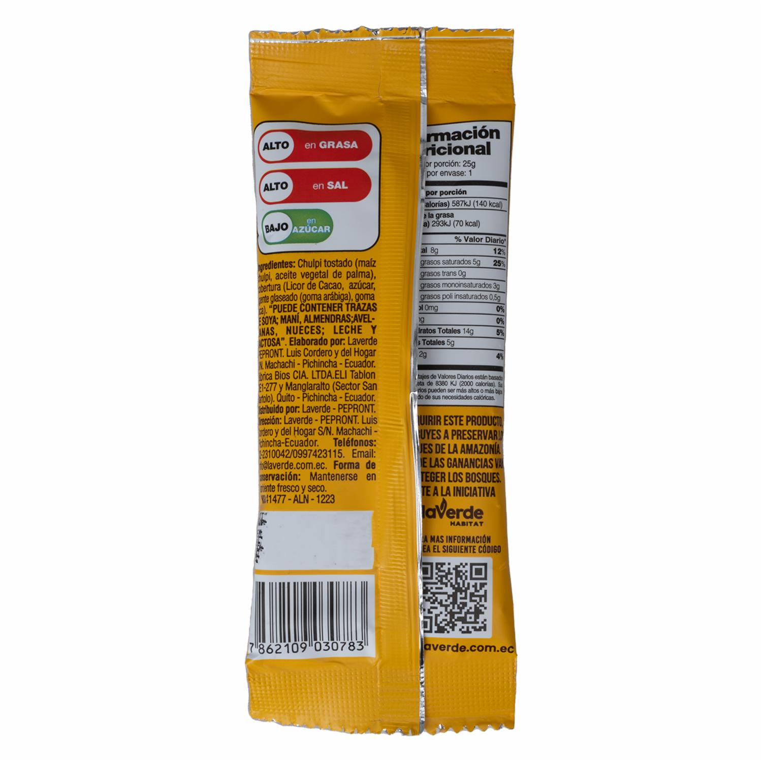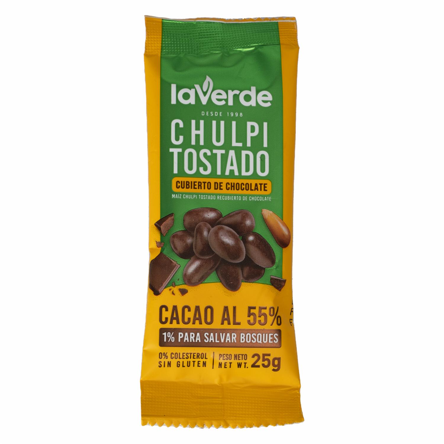 Chulpi Recubierto De Chocolate Cacao al 55% LAVERDE 25 G