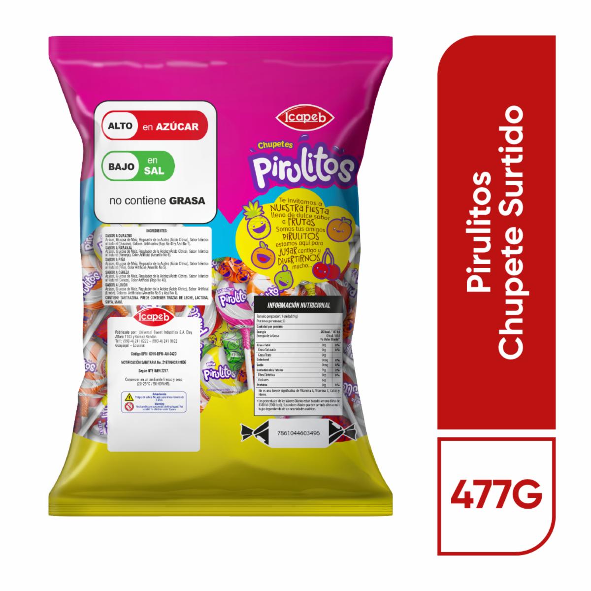 Chupete De Sabores Surtidos PIRULITOS 477 G