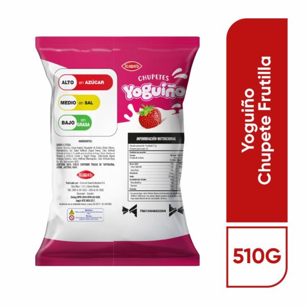 Chupetes con relleno masticable sabor a yogurt frutilla
