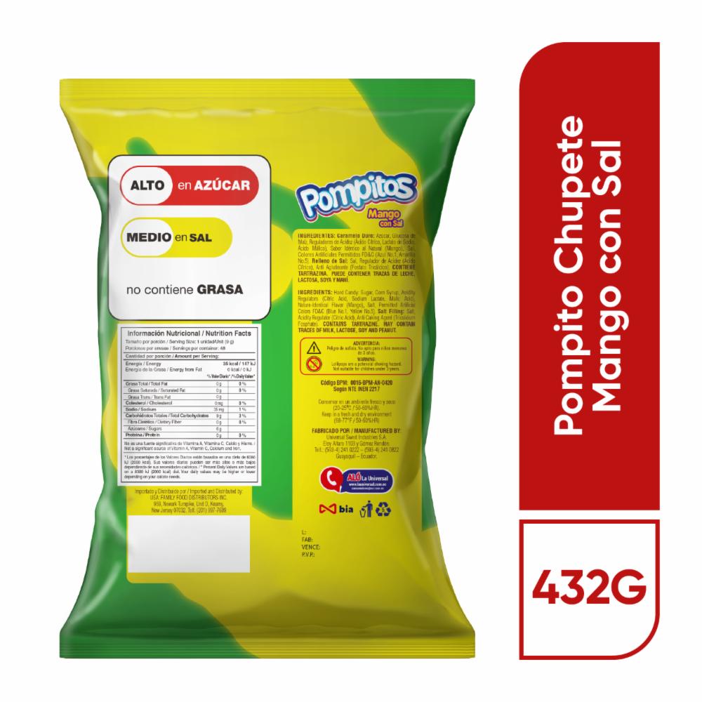 Chupete Mango Con Sal POMPITOS 432 G – POMPITOS. Disponible en nuestros locales. Precio y stock pueden variar según la tienda.