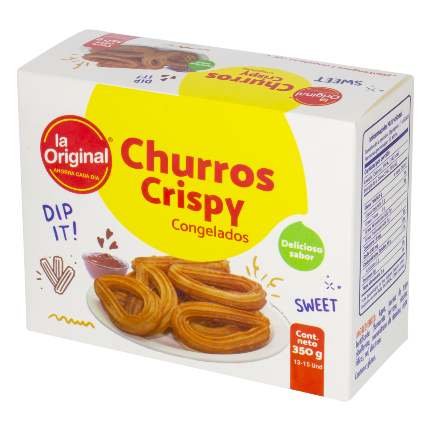consultando preciosChurros Crispy Congelados LA ORIGINAL 350 G – LA ORIGINAL. Disponible en nuestros locales. Precio y stock pueden variar según la tienda.
