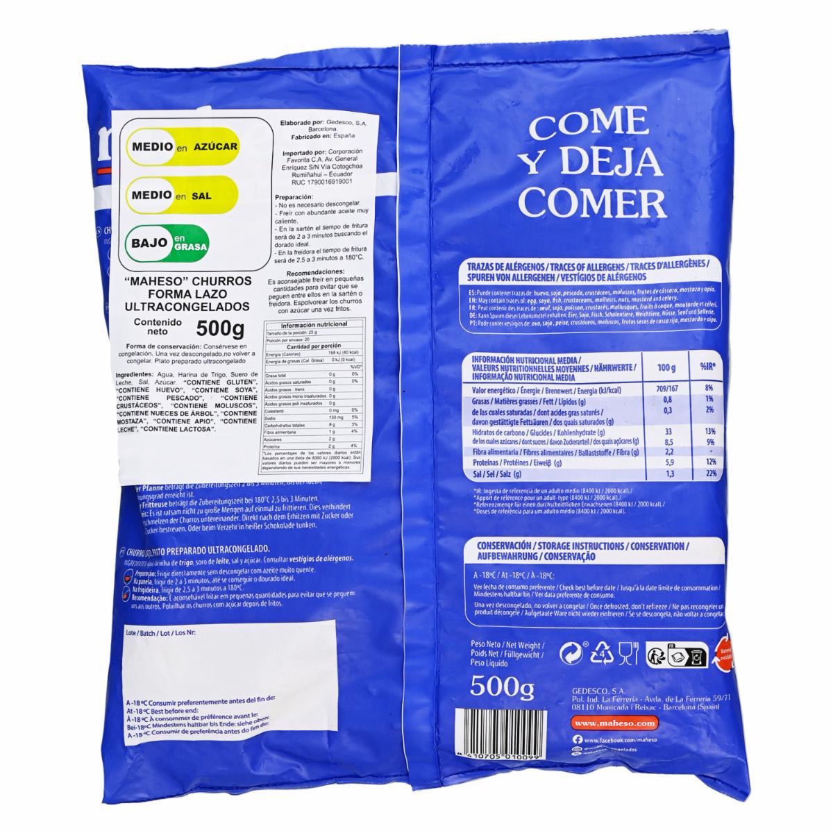 Churros Lazo MAHESO 500 g – MAHESO. Disponible en nuestros locales. Precio y stock pueden variar según la tienda.