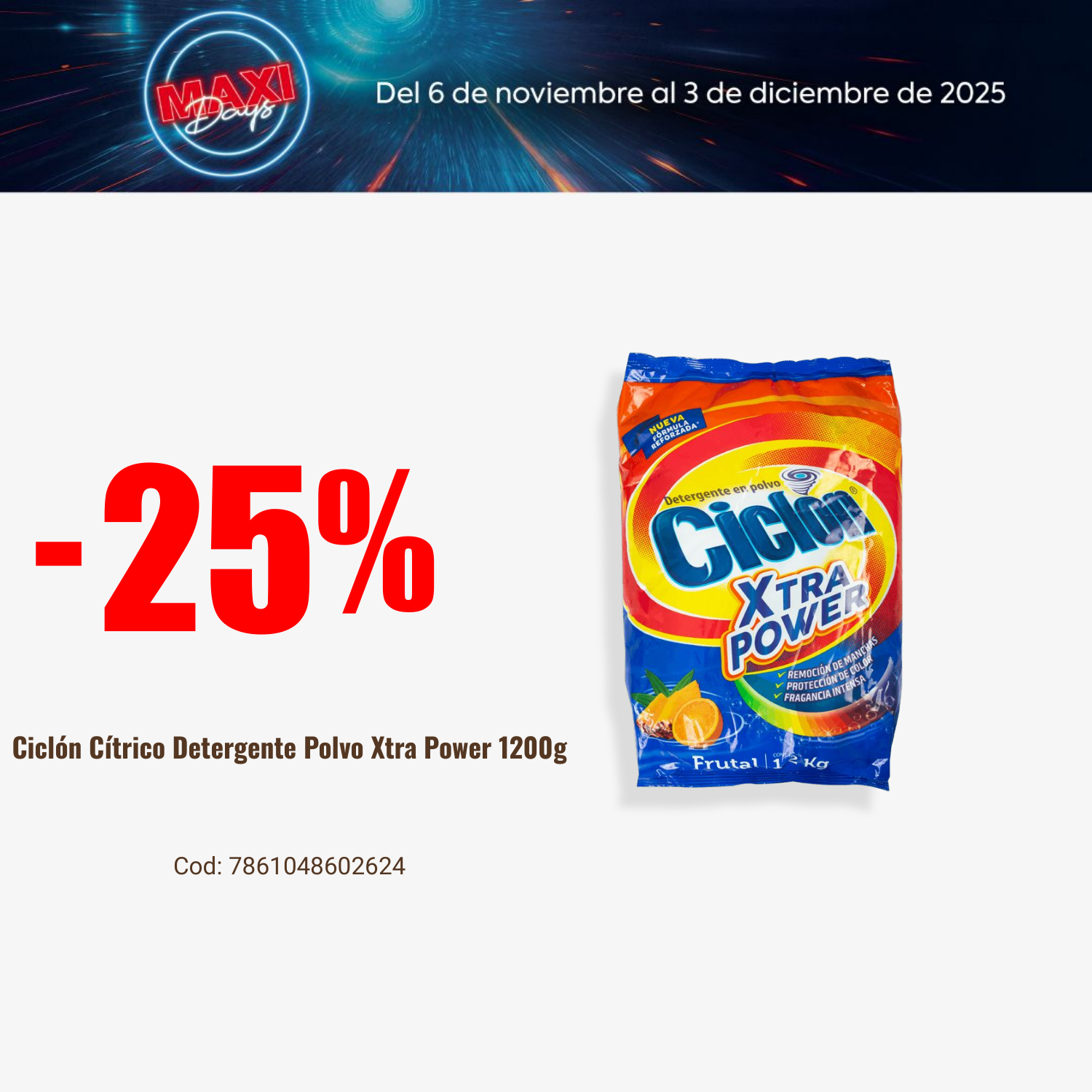 Ciclón Cítrico Detergente Polvo Xtra Power 1200g