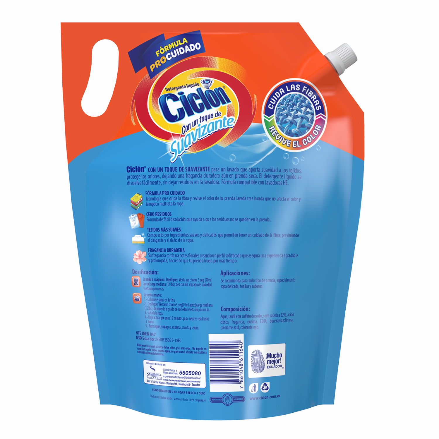 Detergente Líquido Ciclón Toque Suavizante CICLÓN 2500 Ml