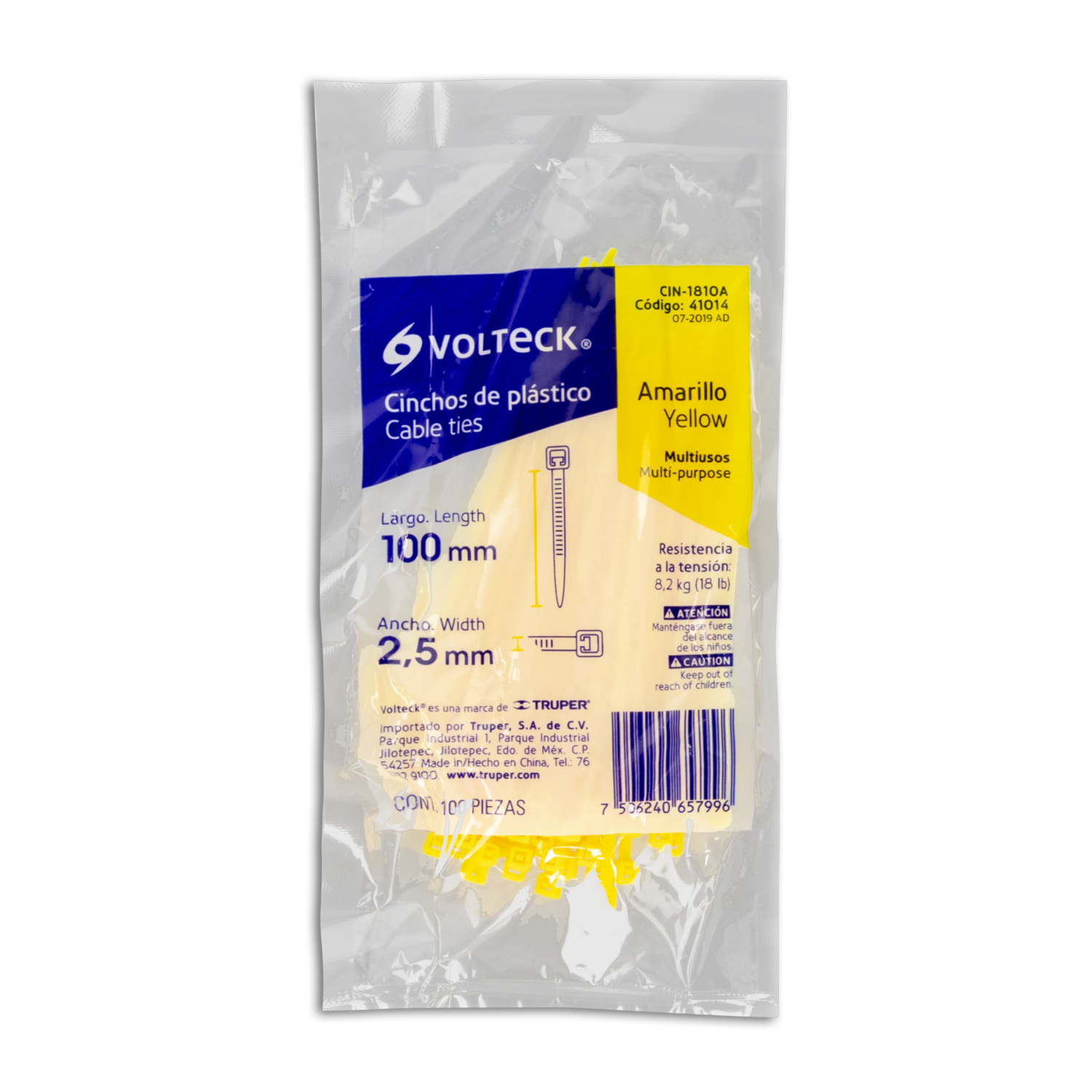 - Cinchos de Plástico Multiusos Color Amarillo PRETUL, de 100mm x 2,5mm, son ideales para asegurar y organizar cables, tubos y otros objetosFabricados con plástico resistente, garantizan una sujeción firme y duraderaPerfectos para uso doméstico, industrial o en proyectos de bricolajeDescubre la versatilidad y calidad de los Cinchos de Plástico Multiusos Color Amarillo PRETUL para mantener todo ordenado y seguro