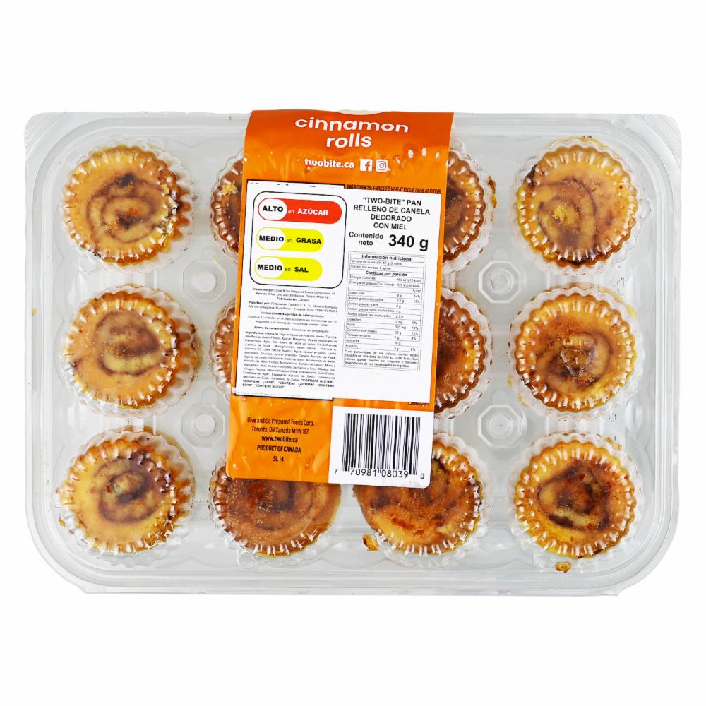 Cinnamon Rolls TWO-BITE 340 G. Disponible en nuestros locales. Precio y stock pueden variar según la tienda.