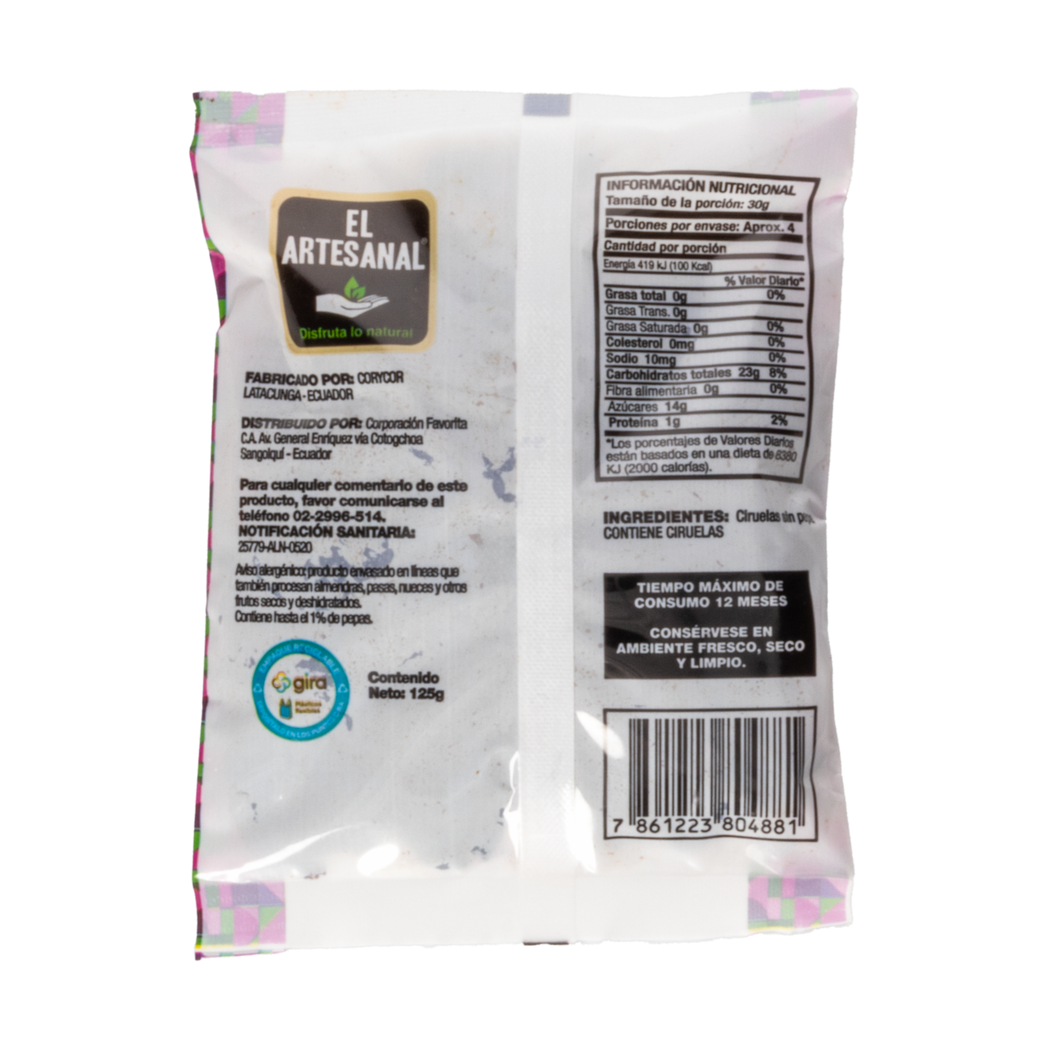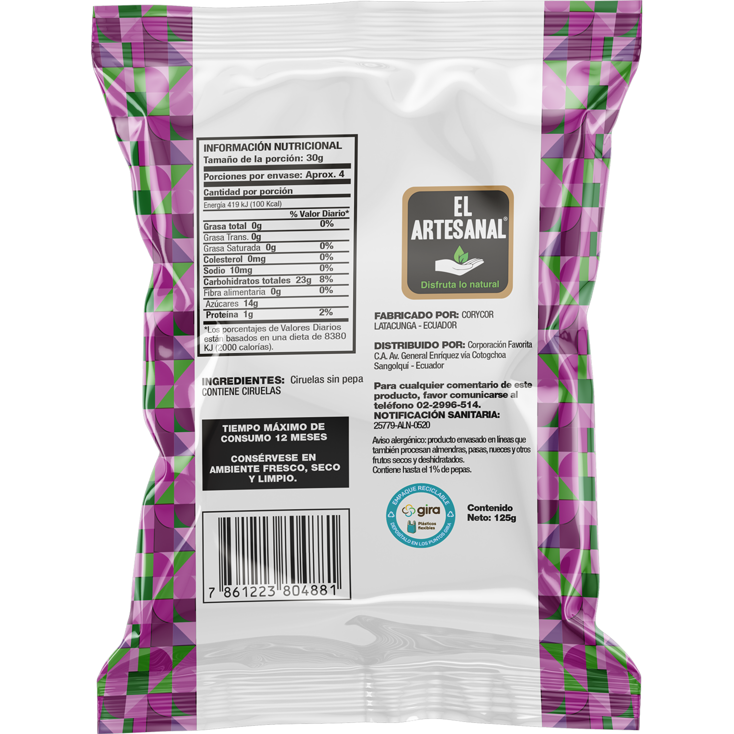 Ciruelas 100% Natural EL ARTESANAL 125G – EL ARTESANAL. Disponible en nuestros locales. Precio y stock pueden variar según la tienda.