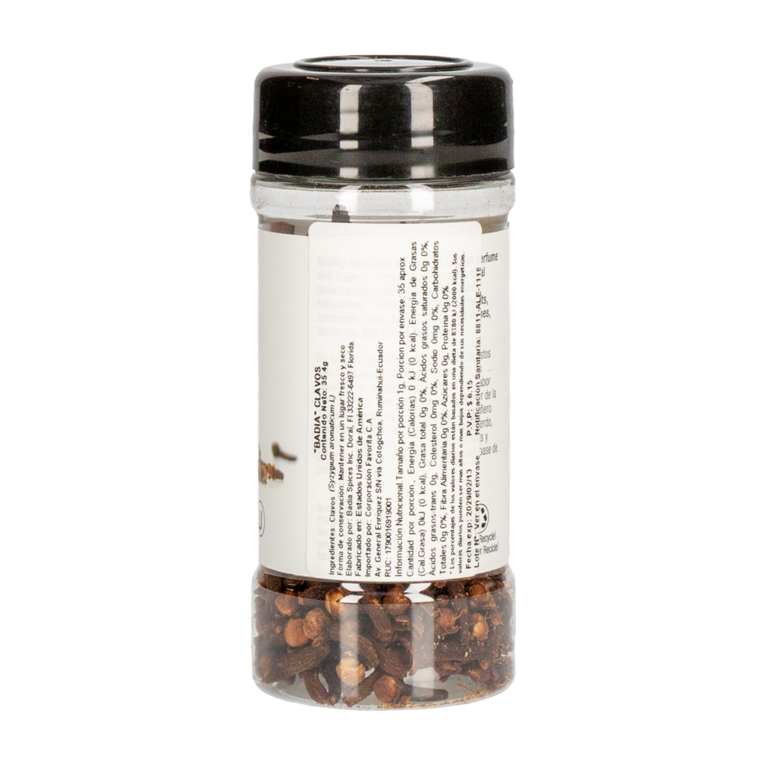 - El clavo de olor entero empacado Badia es un condimento aromático y fuerte en sabor, con propiedades antioxidantes y antiinflamatorias. Se utiliza comúnmente en la cocina para sazonar carnes, sopas y postres, y también puede ser utilizado en infusiones para aliviar dolores de cabeza y problemas digestivos. Badia es una marca reconocida por ofrecer productos de alta calidad y frescura