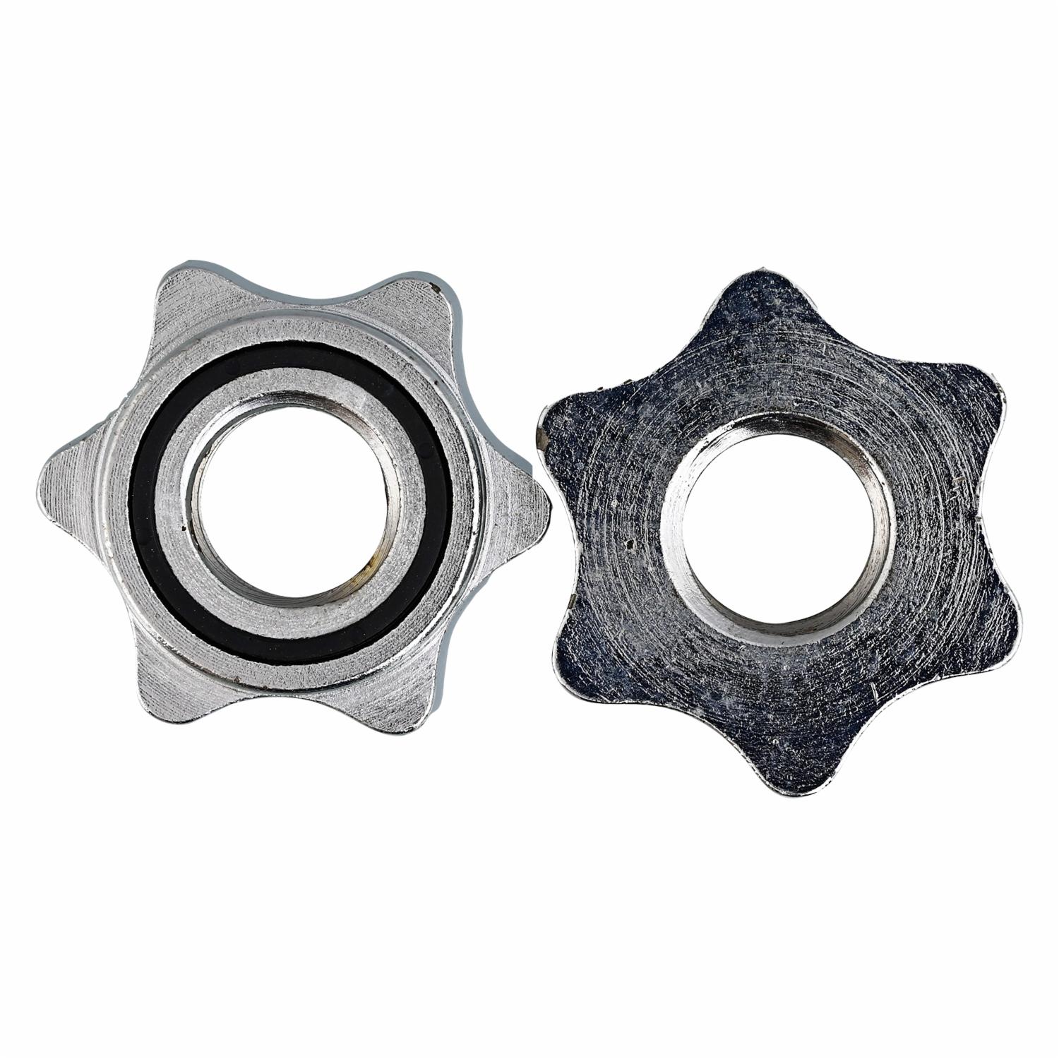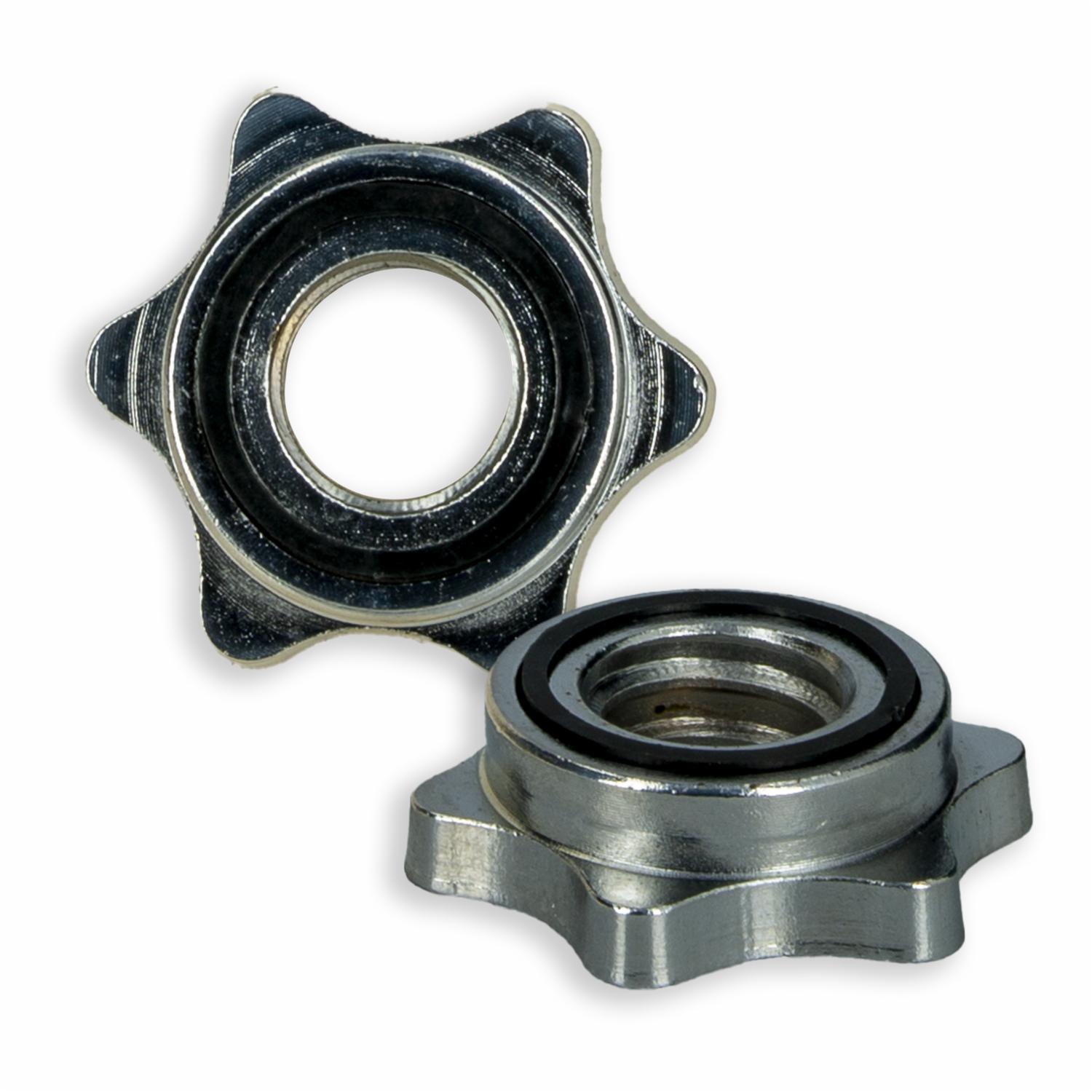 - Seguros para mancuernas roscados Rising, fabricados en acero resistente.