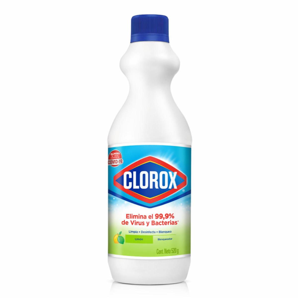 - El Cloro Clorox Líquido elimina el 99.9% de bacterias y el virus SARS-CoV-2 causante del Covid-19. Gracias a su fórmula original y su ingrediente activo el Hipoclorito de Sodio, remueve manchas, limpia y desinfecta superficies grandes y pequeñas de tu hogar. Se debe utilizar según indicaciones para lograr una limpieza profunda en la cocina, baño, inodoros y las manijas de todas las puertas de la casa. Disfruta de todos sus beneficios de limpieza con un agradable aroma a limón