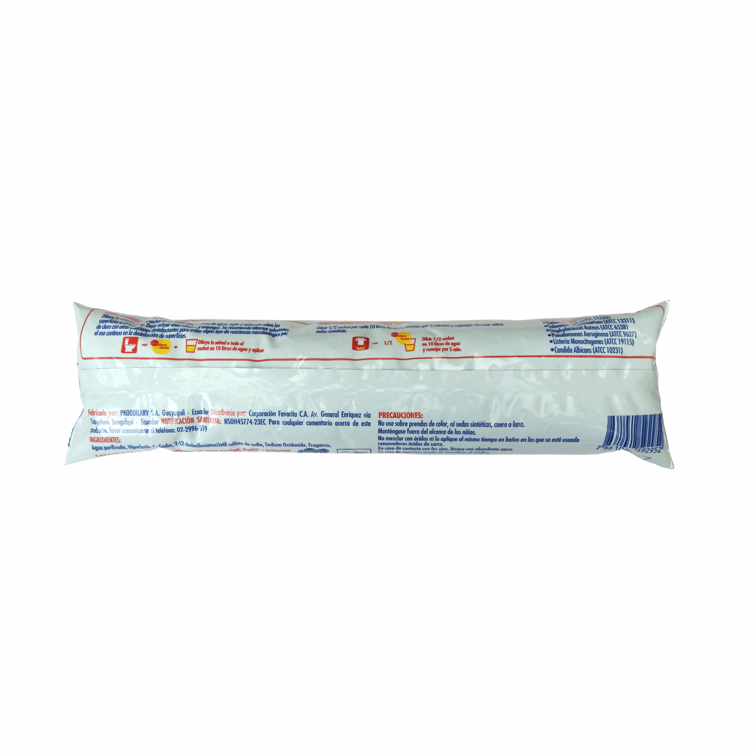 Desinfección rápida y eficaz, eliminando el 99,99% de bacterias. Blanquea la ropa blanca y de algodón. Desodoriza al eliminar olores desagradables. Desmancha las superficies. Ideal para baños, pisos, ropa blanca y demás superficies lavables