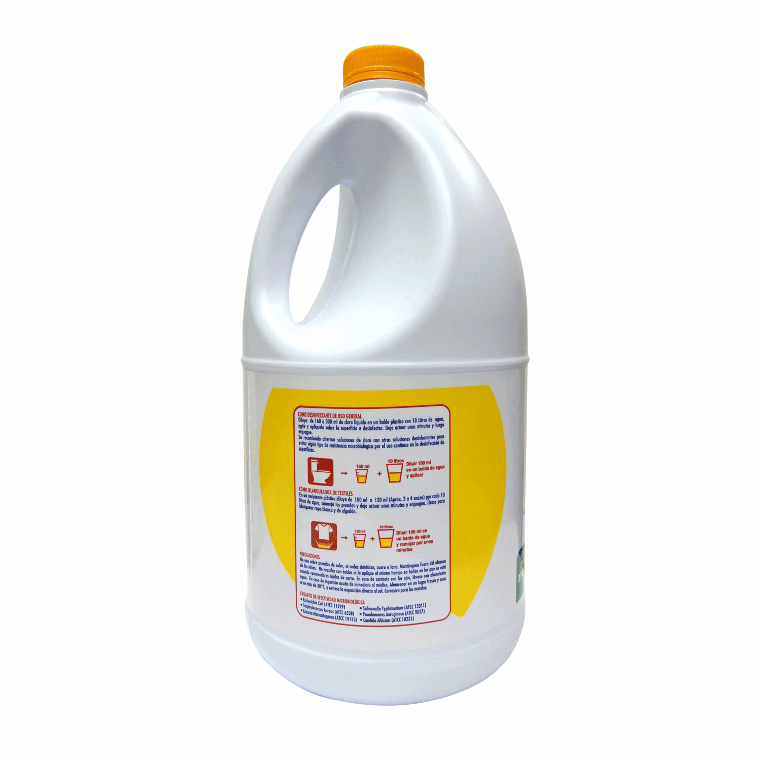 Desinfección rápida y eficaz, eliminando el 99,99% de bacterias. Blanquea la ropa blanca y de algodón. Desodoriza al eliminar olores desagradables. Desmancha las superficies. Ideal para baños, pisos, ropa blanca y demás superficies lavables