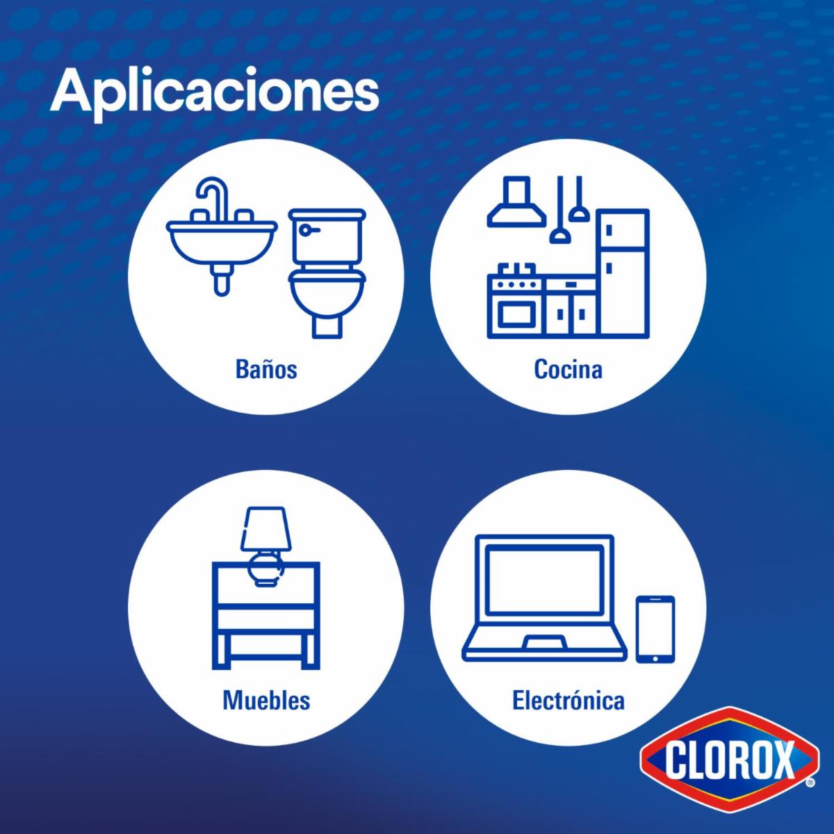 - Las Toallitas Desinfectantes Clorox Expert limpian y desinfectan las múltiples superficies ya que, en tan solo un minuto, eliminan el 99.9% de virus y bacterias, incluyendo el virus causante del COVID-19