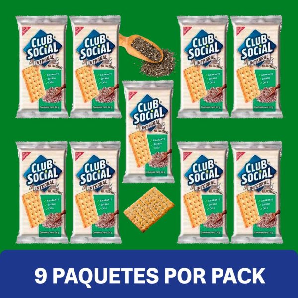 • Galletas Saladas Club Social con Multigranos 6pack x 24g c/u con harina de trigo integral, cañihua, kiwicha (amaranto), quinua y chía