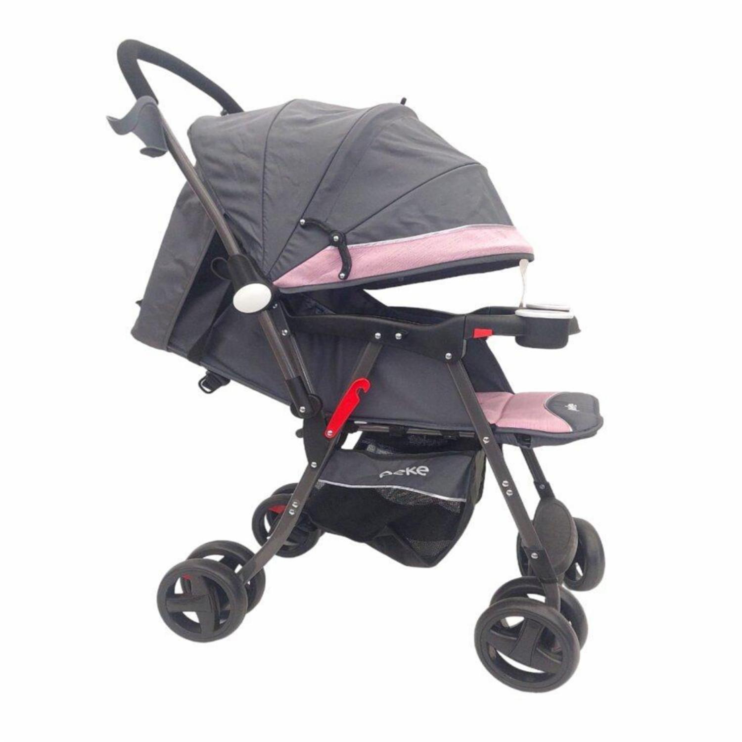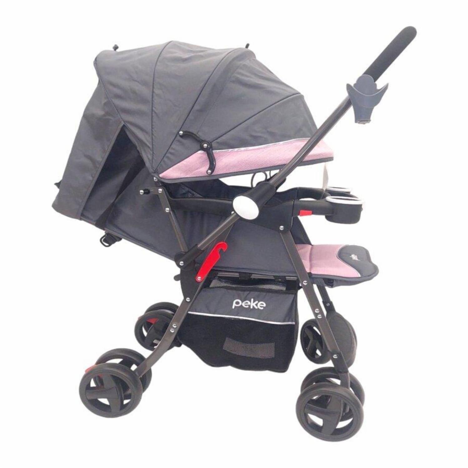 Coche Para Bebé Con Manubrio Reversible Rosado PEKE 76x45x98