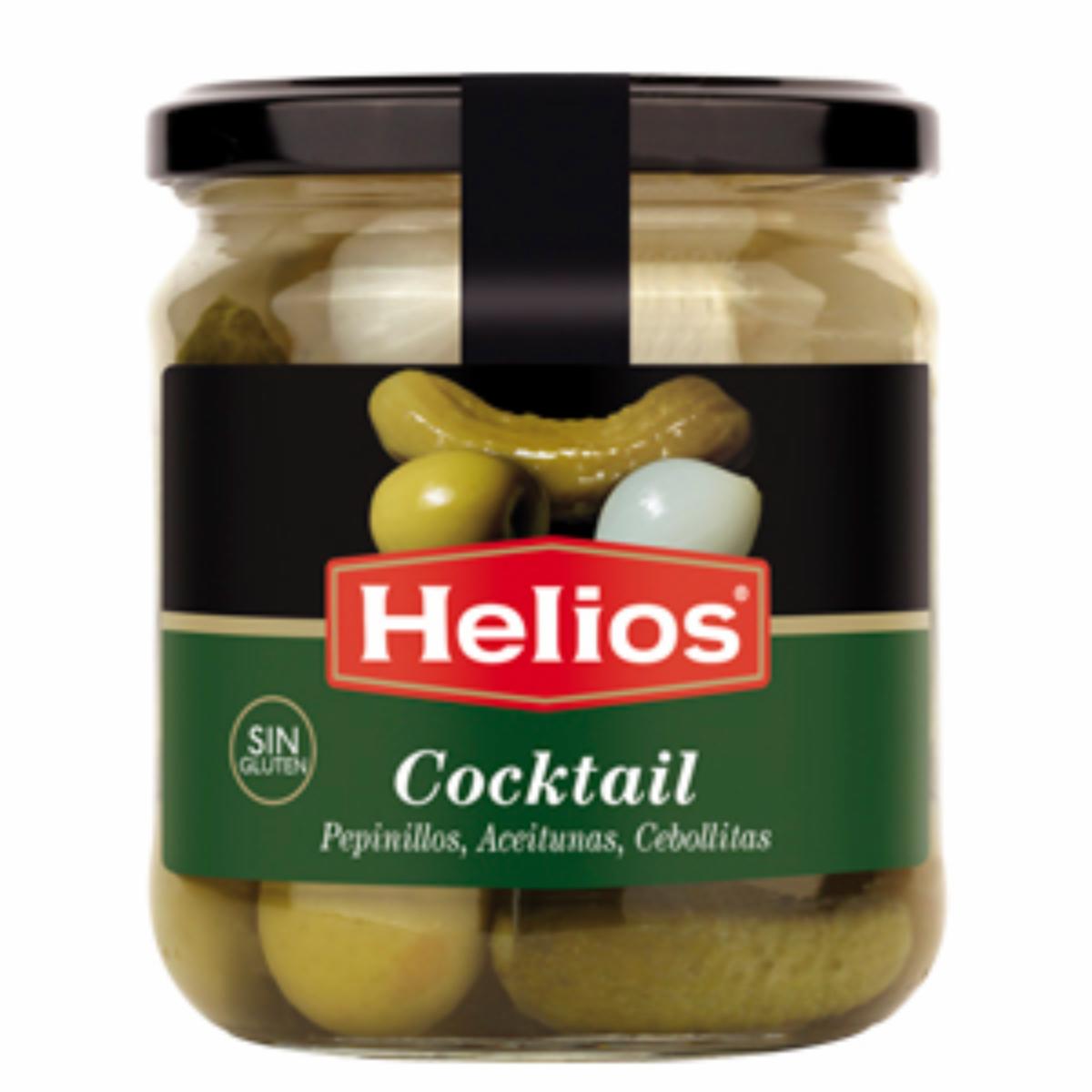- Disfruta de una combinación irresistible de sabores con nuestro Cocktail de Pepinillos, Cebollas y Aceitunas de Helios. Este delicioso cocktail ofrece una mezcla perfecta de pepinillos crujientes, cebollas tiernas y aceitunas sabrosas, todo ello marinado en una deliciosa mezcla de vinagre y especias