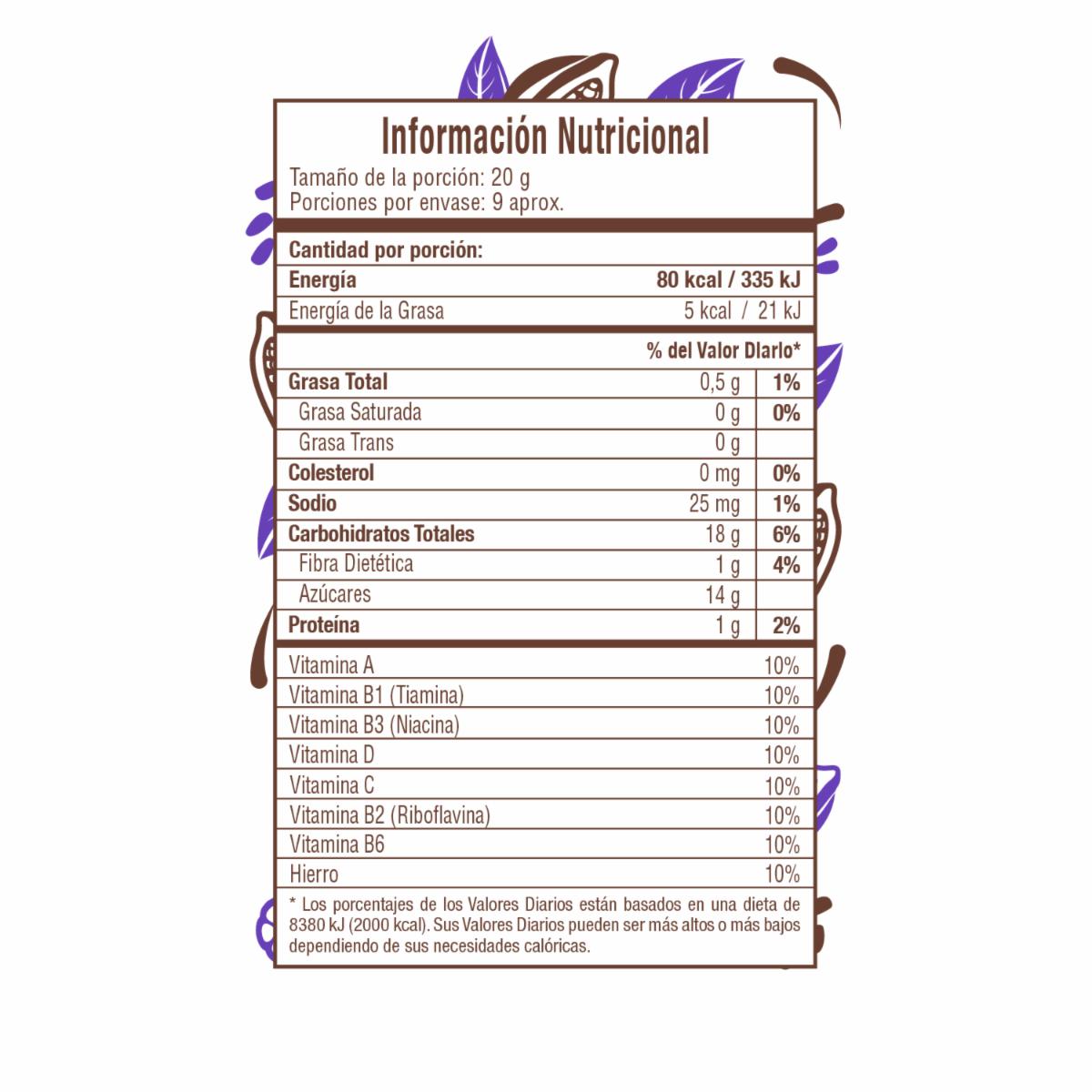 - Mezcla de avena y cacao en polvo azucarado adicionado con vitaminas y hierro