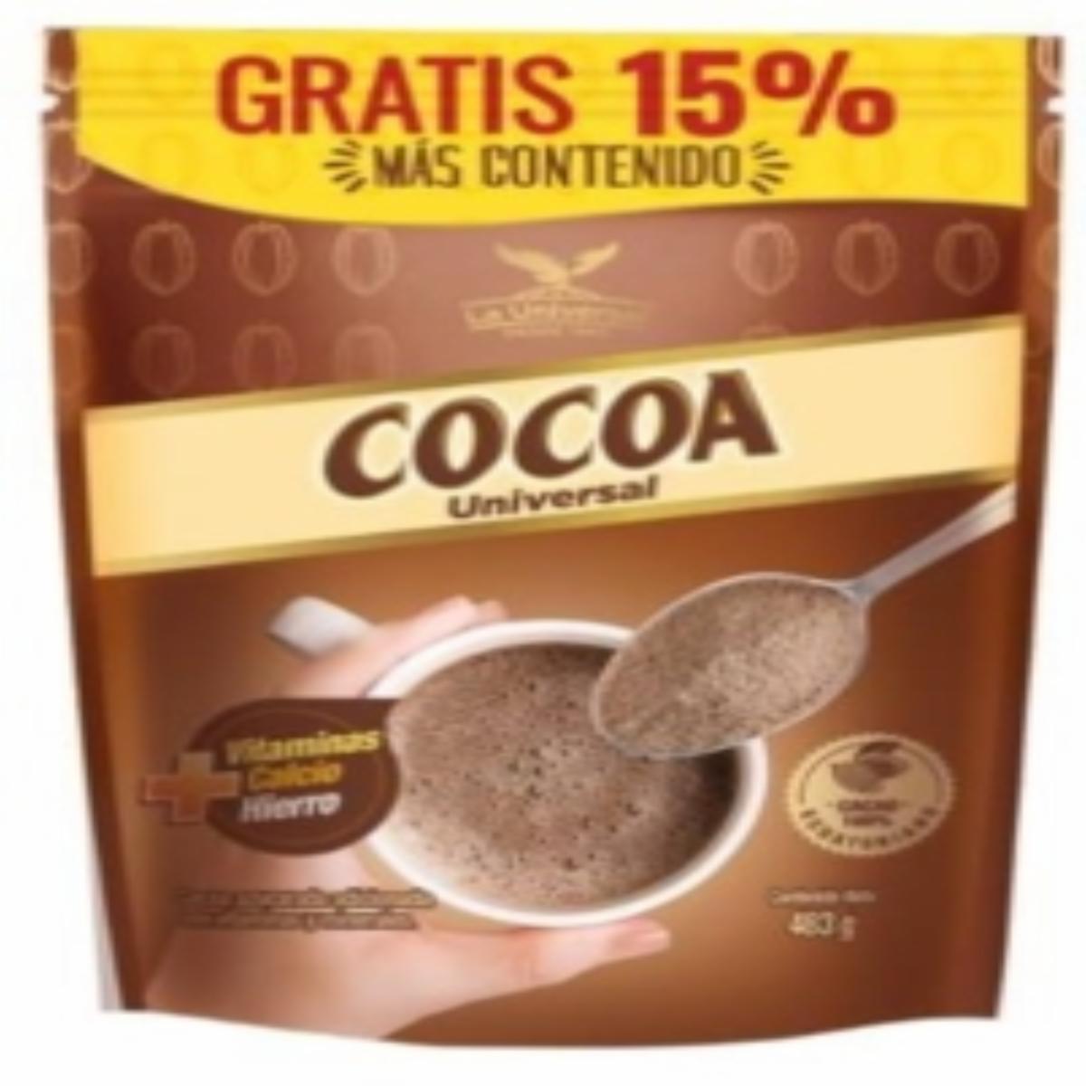 - La cocoa en polvo en doypack de 483 gramos de La Universal es una opción ideal para quienes desean tener una cantidad generosa de este ingrediente versátil en la cocina