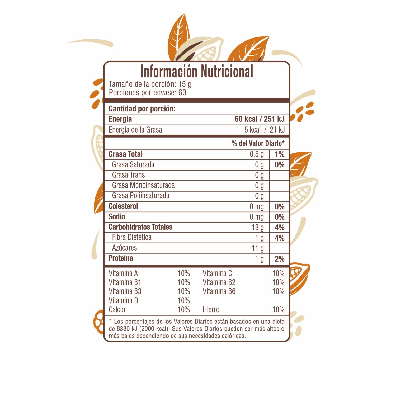 - Mezcla de cacao en polvo azucarado adicionado con vitaminas y minerales