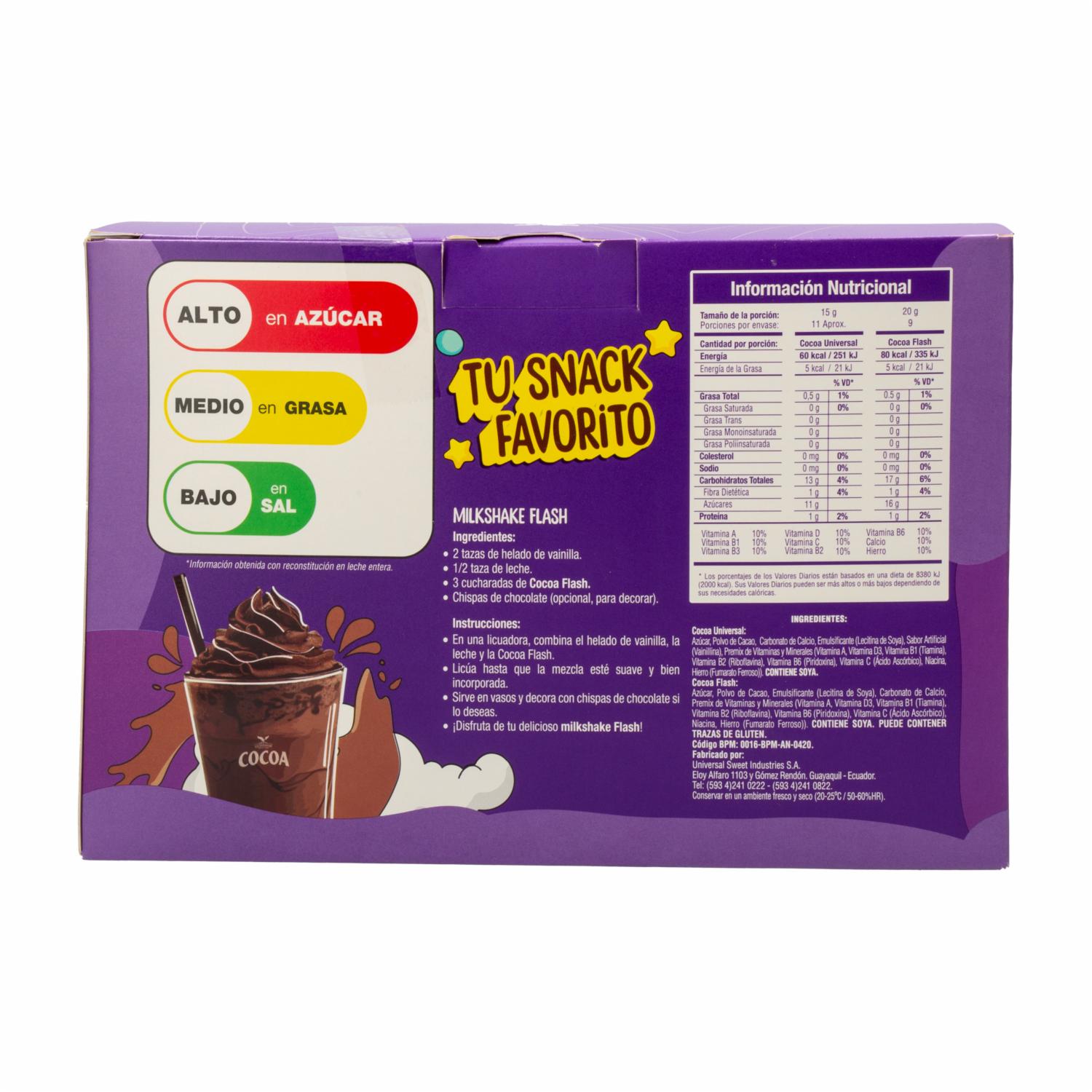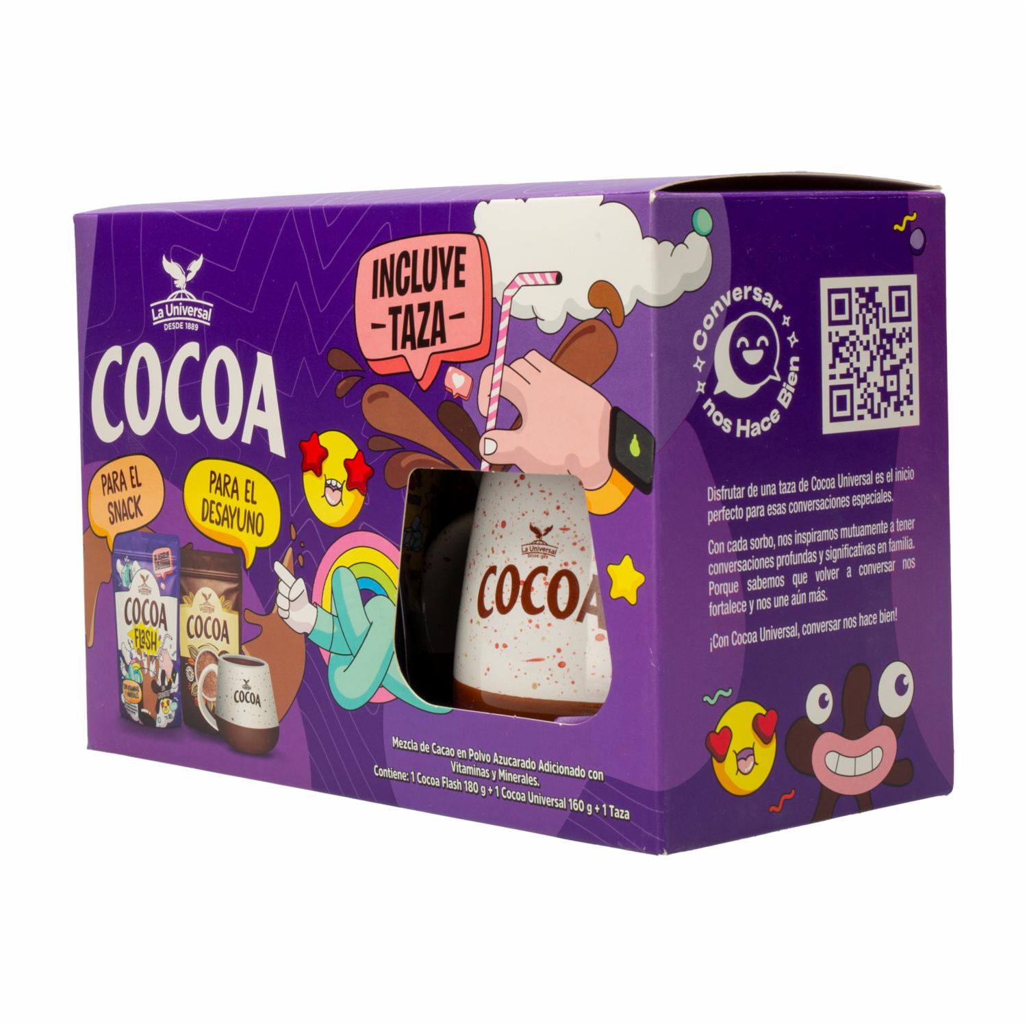 - El cacao en polvo Promo Más Jarro de La Universal en su presentación de 160 gramos es una excelente opción para quienes disfrutan del sabor intenso del chocolate. Este cacao en polvo es ideal para preparar bebidas calientes, batidos, postres, o incluso para añadir a recetas de repostería como brownies y pasteles