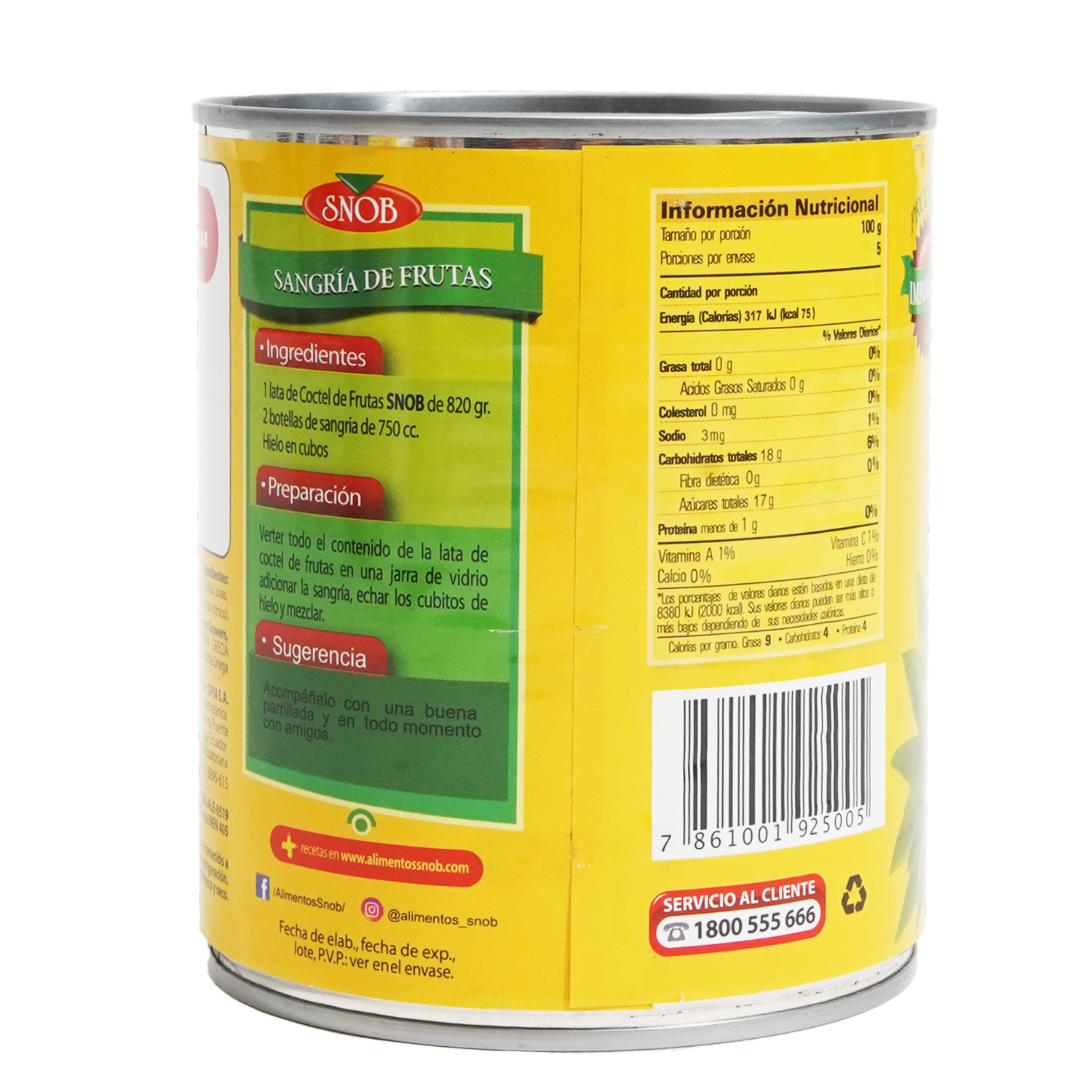 consultando preciosCoctel De Frutas En Almíbar SNOB Lata – SNOB. Disponible en nuestros locales. Precio y stock pueden variar según la tienda.