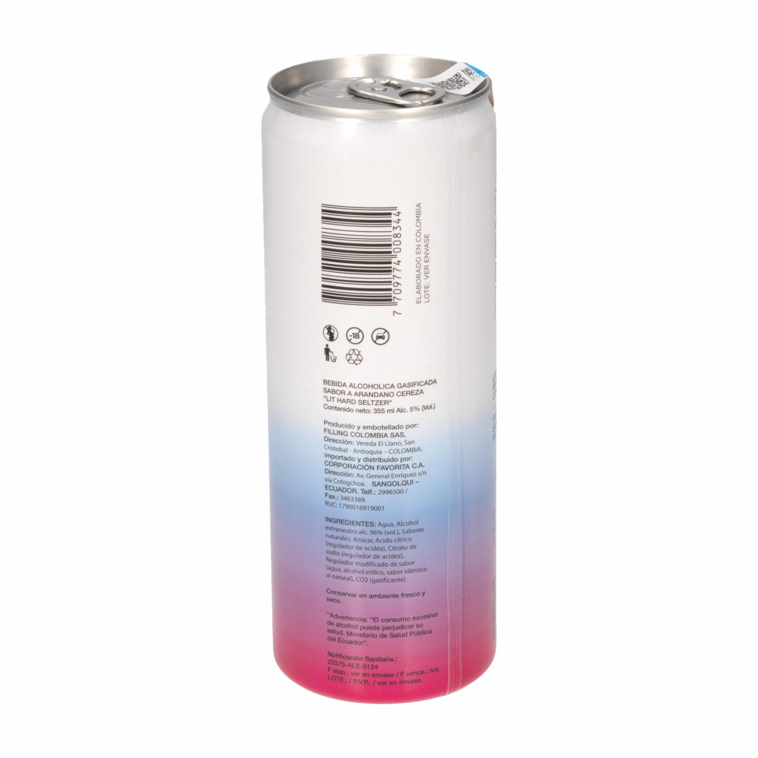 Coctel Sabor A Arándano Cereza LIT HARD SELTZER 355 Ml – LIT HARD SELTZER. Disponible en nuestros locales. Precio y stock pueden variar según la tienda.