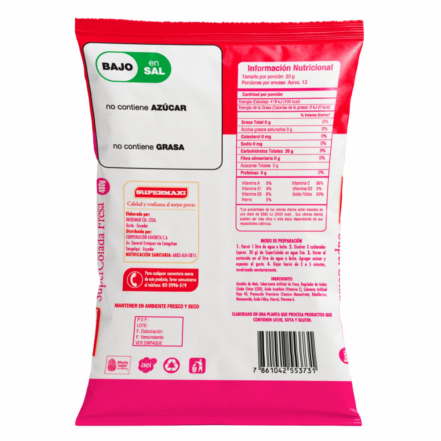 consultando preciosColada Sabor Fresa SUPERMAXI 400 G – SUPERMAXI. Disponible en nuestros locales. Precio y stock pueden variar según la tienda.