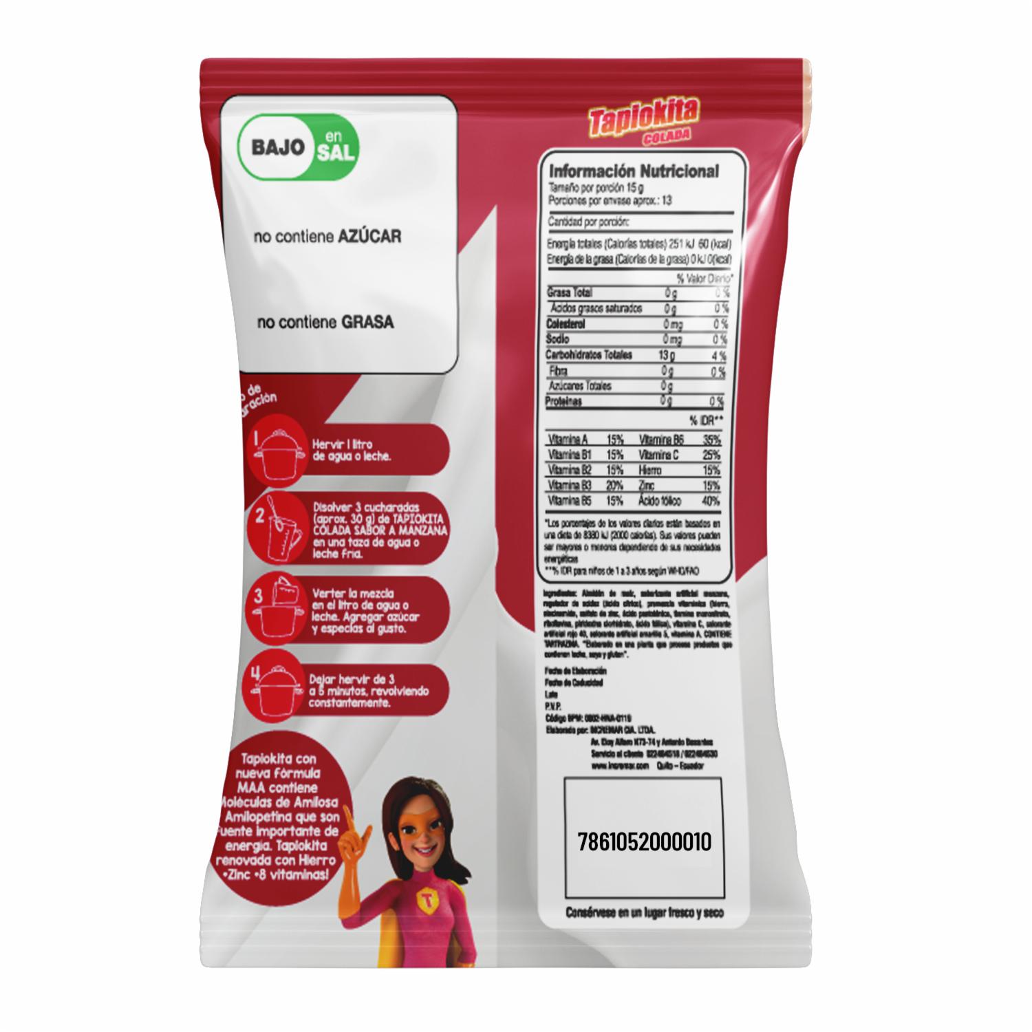 Colada Sabor Manzana TAPIOKITA 200 G – TAPIOKITA. Disponible en nuestros locales. Precio y stock pueden variar según la tienda.