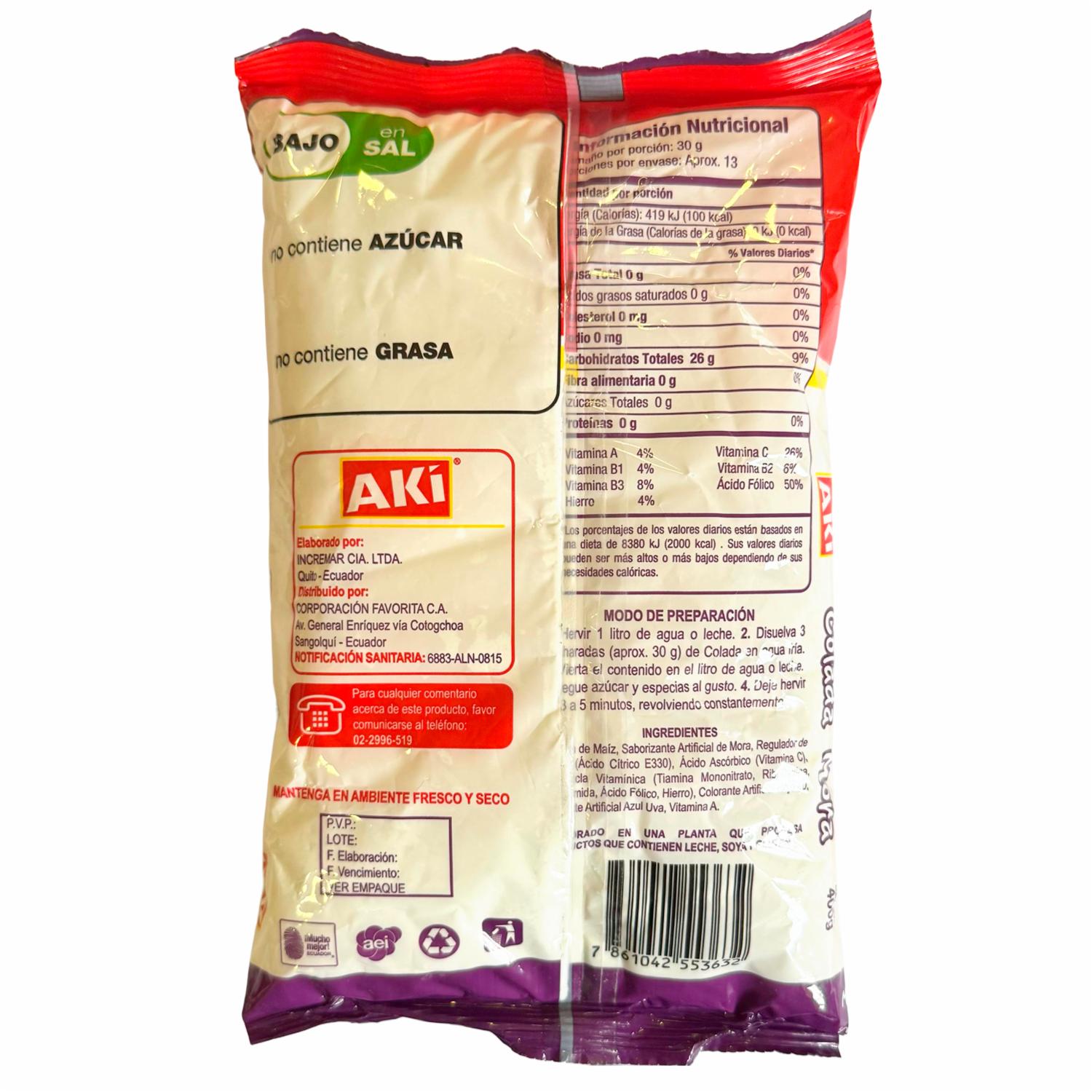 consultando preciosColada Sabor Mora AKÍ 400 G – AKÍ. Disponible en nuestros locales. Precio y stock pueden variar según la tienda.