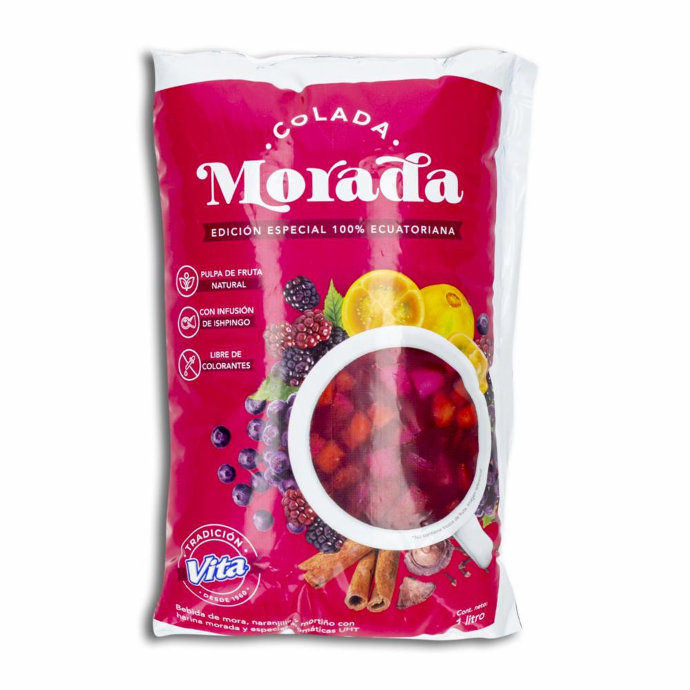 - La "Colada Morada VITA 1000 Ml" es una bebida tradicional ecuatoriana consumida durante la celebración del Día de los Difuntos