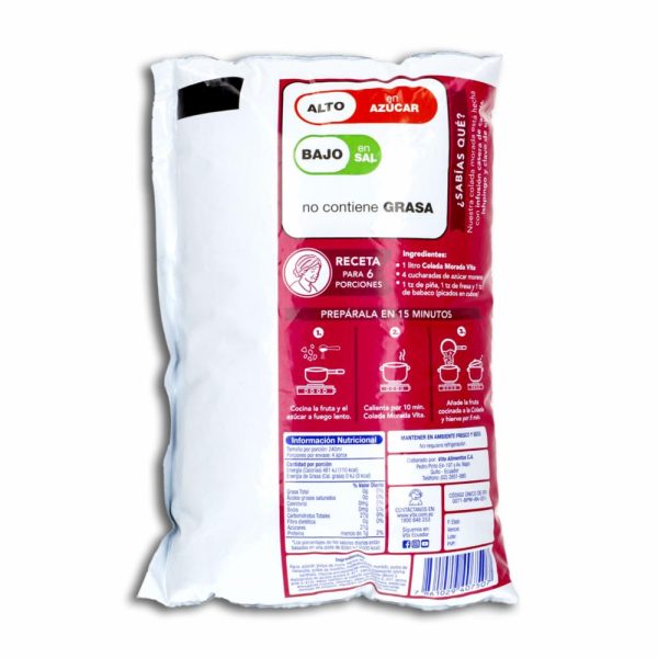 • La "Colada Morada VITA 1000 Ml" es una bebida tradicional ecuatoriana consumida durante la celebración del Día de los Difuntos