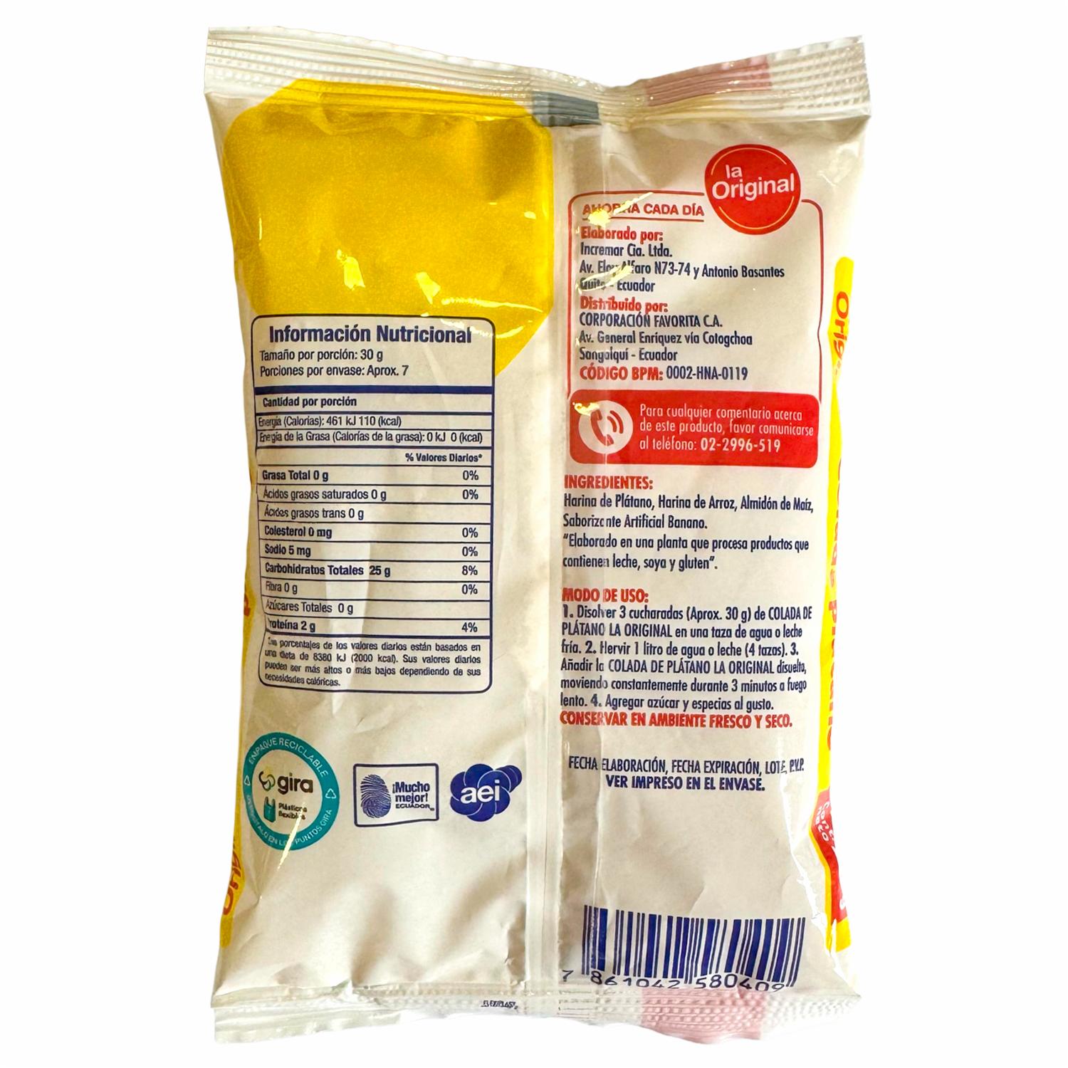 Mezcla En Polvo Fortificada Con Hierro, Zinc Y Vitaminas Presentación 200g rinde 6 litros, Sabor Plátano Gluten Free, No Contiene Azucar, Producto Vegano