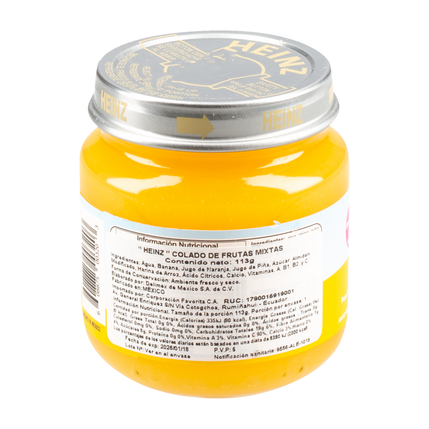 consultando preciosColado Frutas Mixtas HEINZ 113 g – HEINZ. Disponible en nuestros locales. Precio y stock pueden variar según la tienda.
