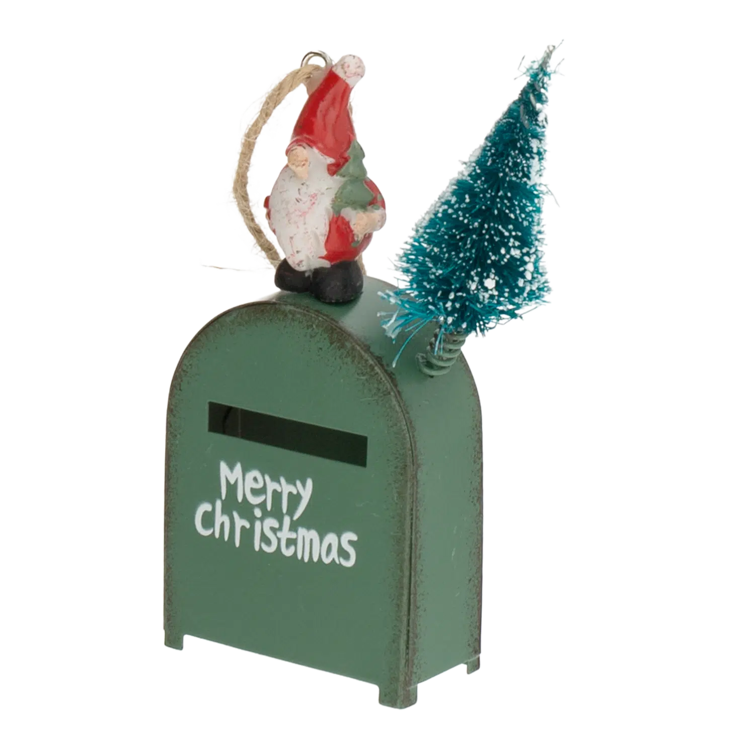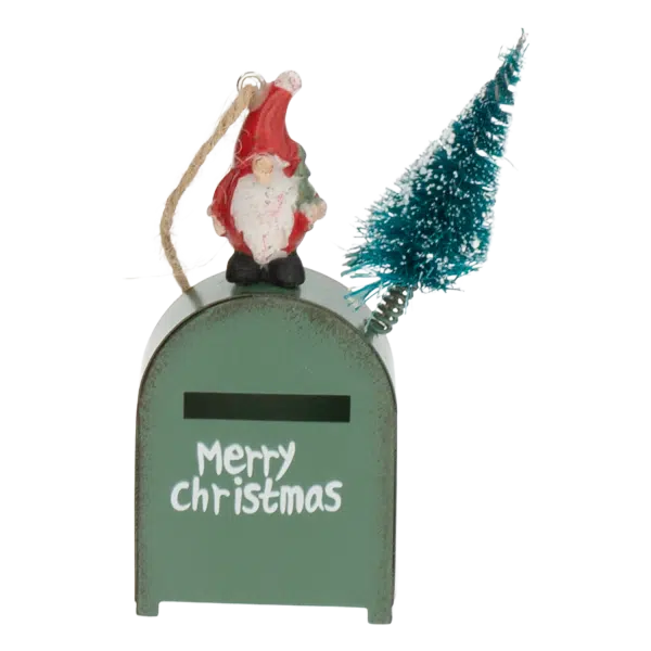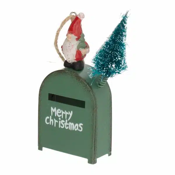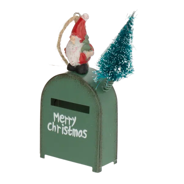 Agrega un detalle encantador a tu árbol con el Colgante Navideño Buzón De Metal JOY. Con sus tonos blanco, verde y rojo, evoca la ilusión de las cartas a Santa y el espíritu festivo de la temporada. Ideal para dar un toque original y lleno de magia navideña a tu decoración
