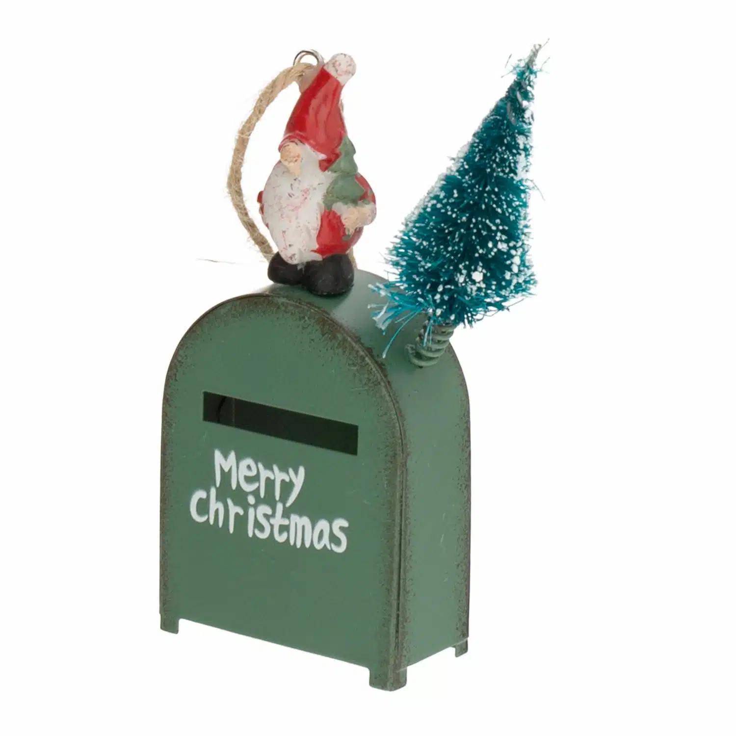 Colgante Navideño Buzón De Metal Blanco Verde Rojo JOY 11X6.5X4 CM