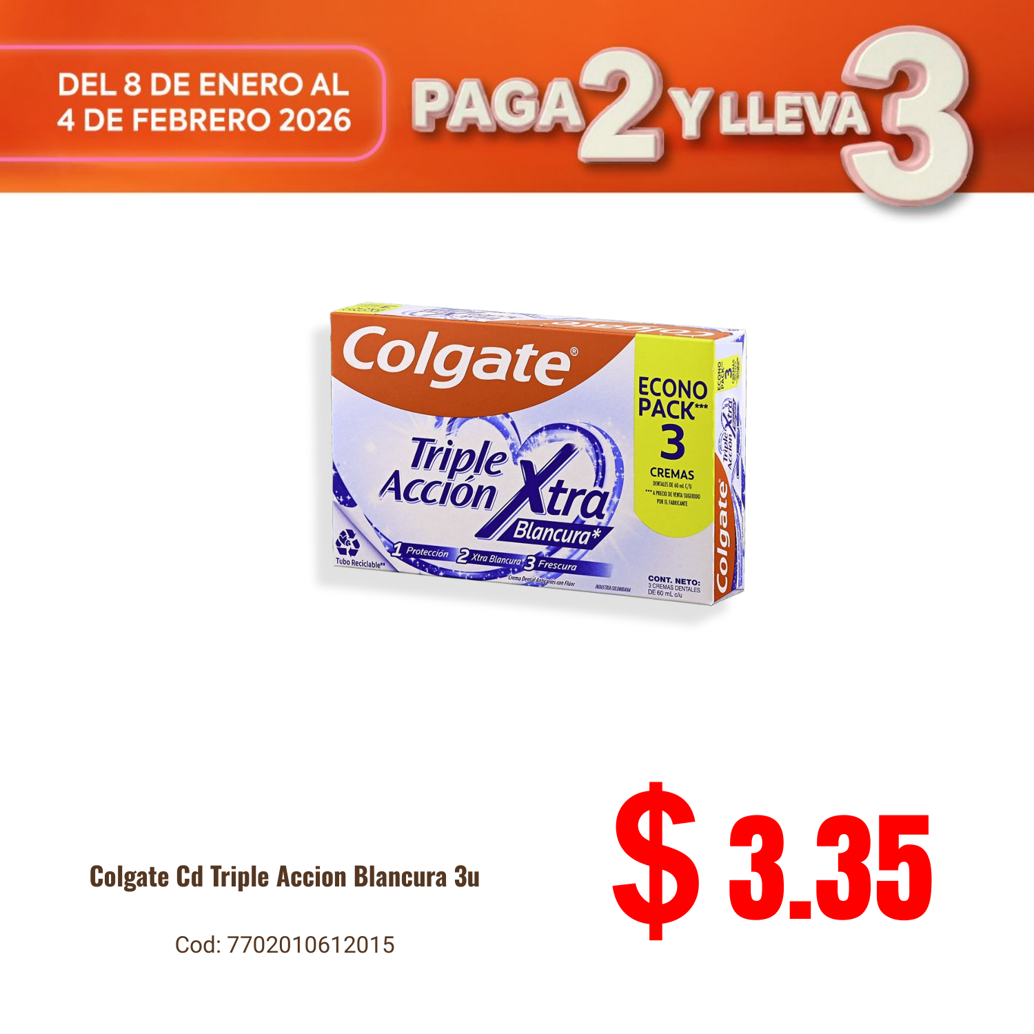 Colgate Cd Triple Accion Blancura 3u