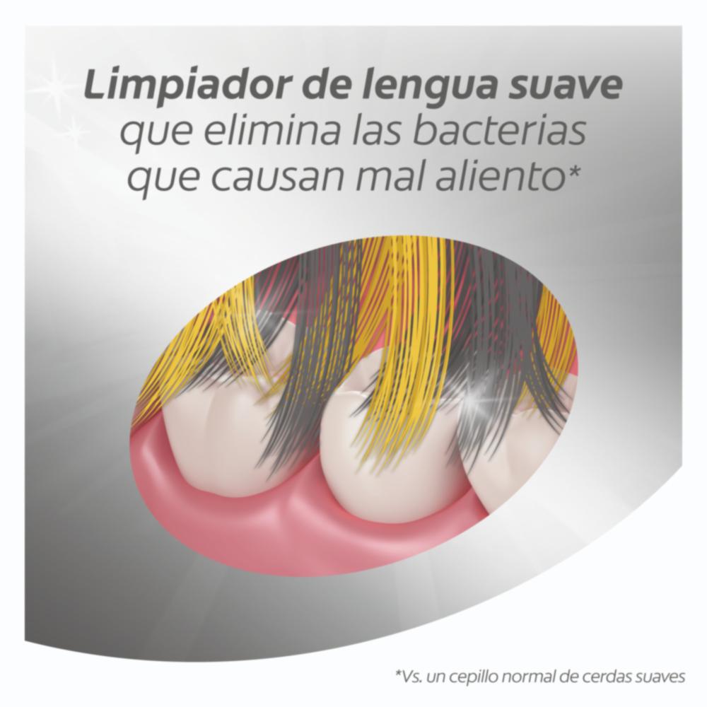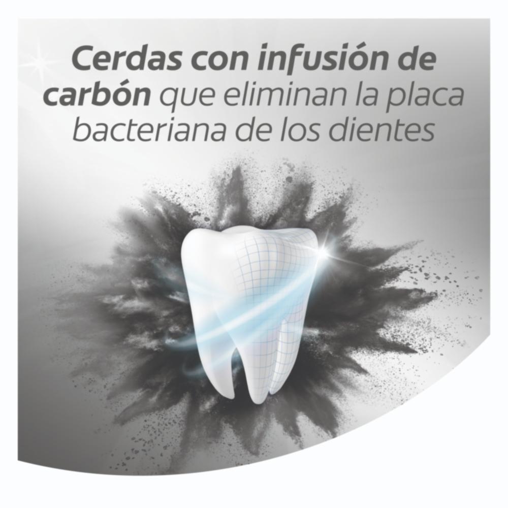 Cepillo Zig Zag x4 con cerdas con infusión de carbón que eliminan la placa bacteriana en la superficie del diente. -Tiene cerdas con infusión de carbón que eliminan la placa bacteriana en la superficie del diente -Tiene cerdas cruzadas de múltiples ángulos diseñadas para llegar profundamente entre los dientes para una limpieza efectiva -Limpiador de lengua suave que elimina suavemente las bacterias que causan el olor