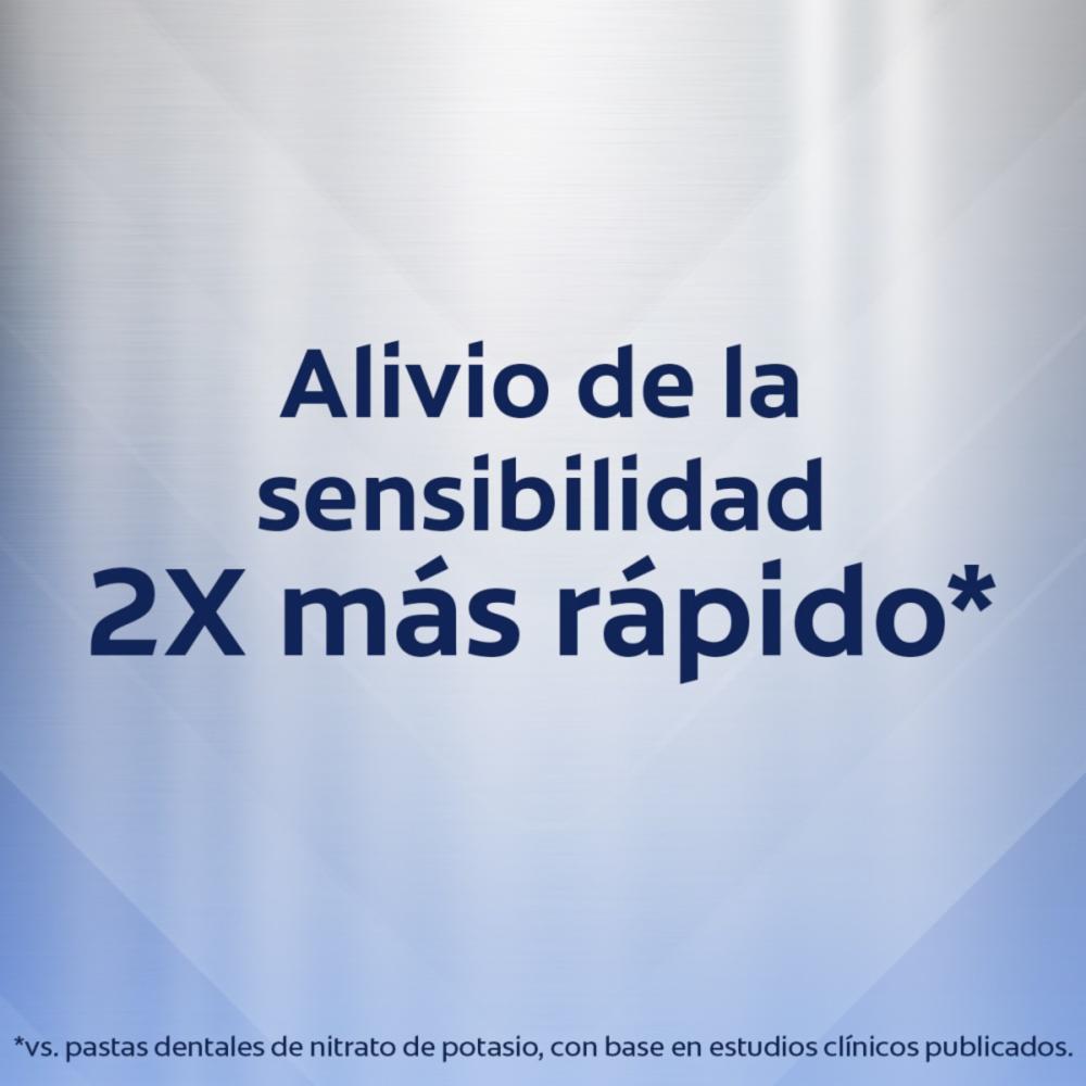 • Este dentífrico te permitirá disfrutar de tus alimentos sin importas que éstos sean fríos o calientes, debido a que cuenta con tecnología pro argin que contiene arginina, la cual cubre los túbulos dentinarios que llevan al centro del diente, de esta forma bloquea la sensibilidad dental al instante