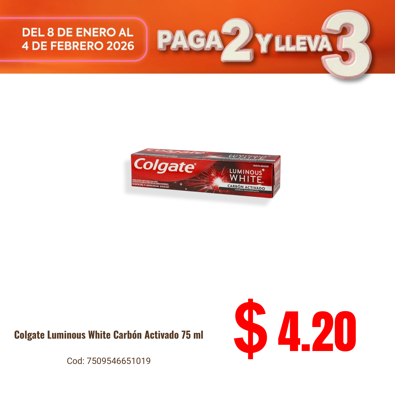 Colgate Luminous White Carbón Activado 75 ml. Disponible en nuestros locales. Precio y stock pueden variar según la tienda.