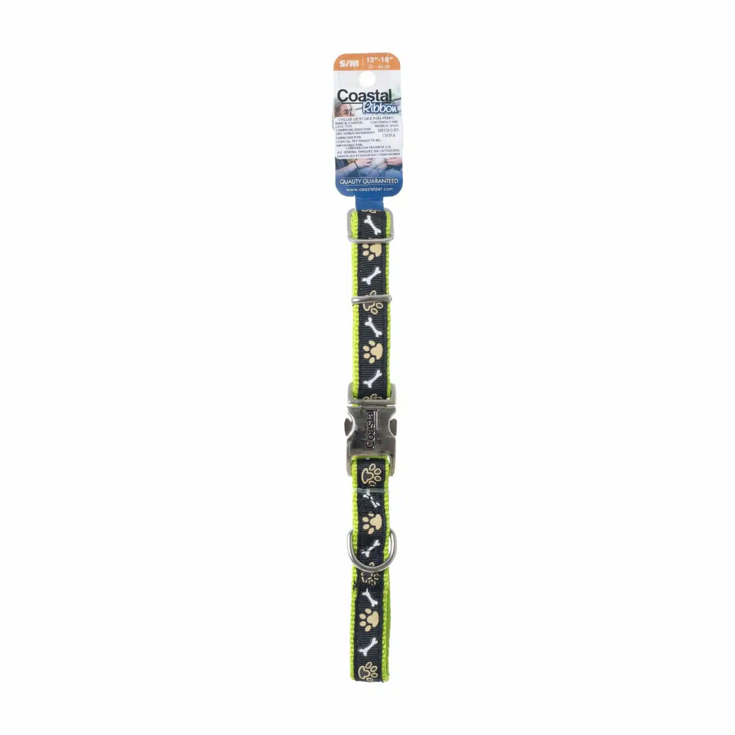 Collar Ajustable Para Perro Huellas Cafes Huesos RIBBON Mediano