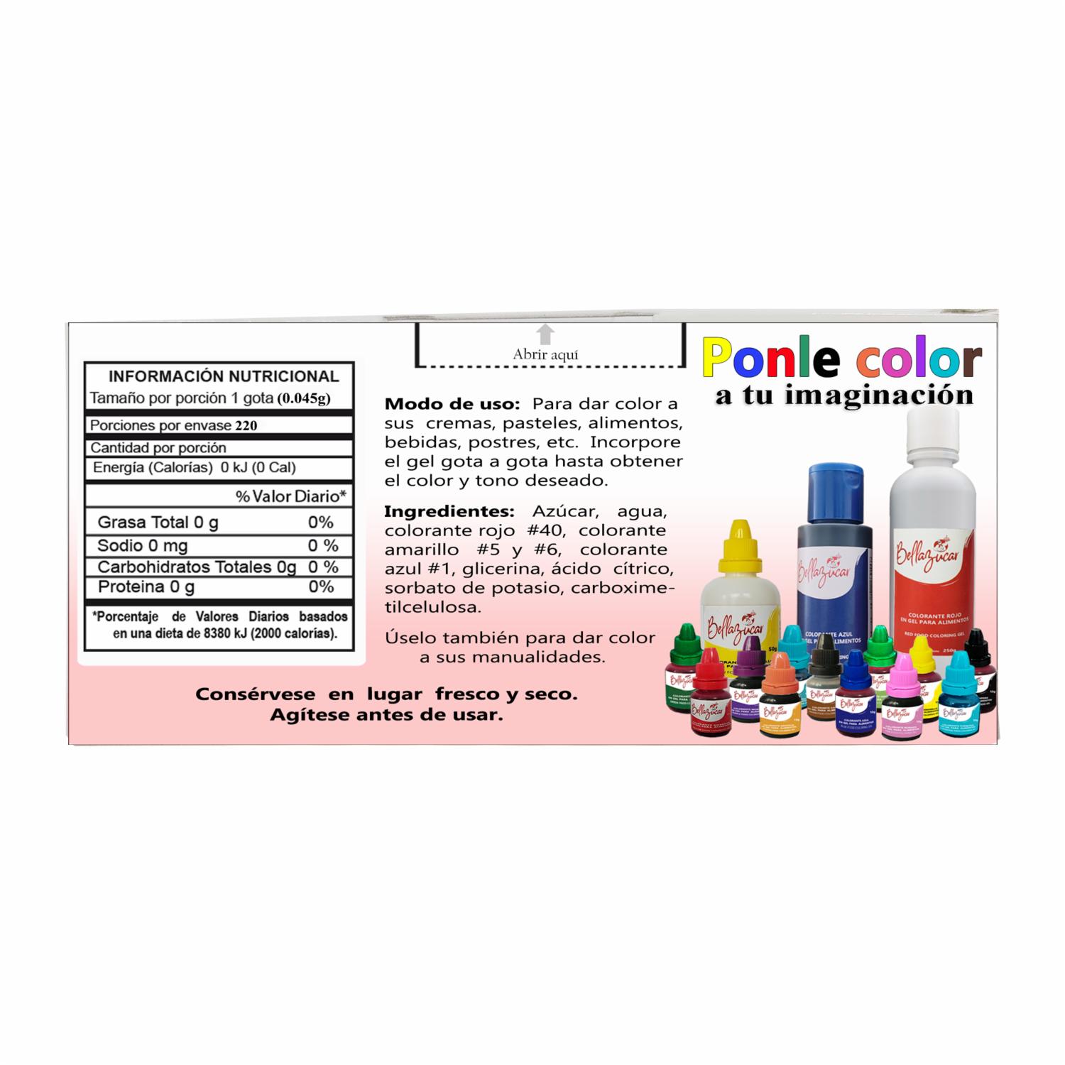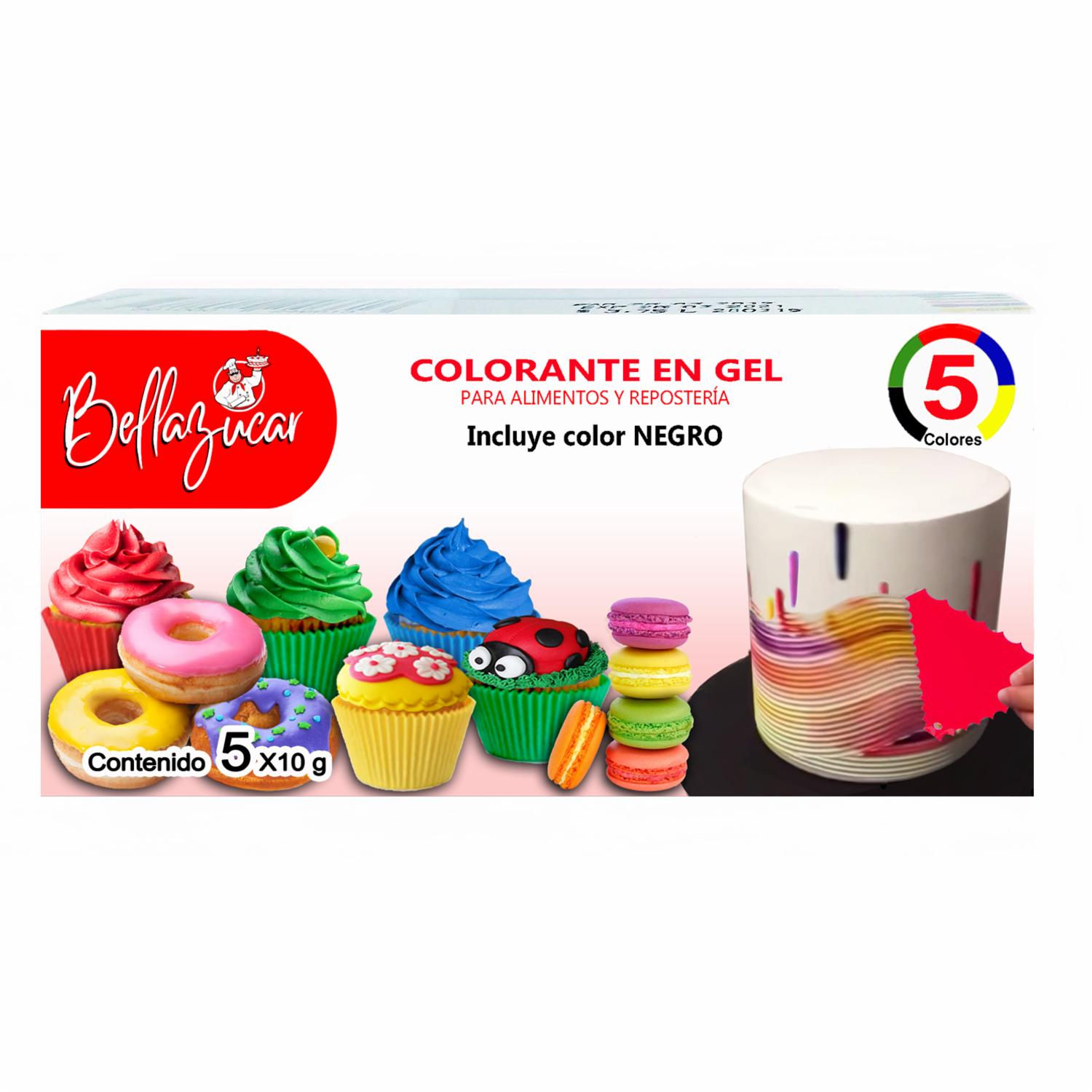 Colorante Para Alimentos En Gel Colores Negro, Verde, Rojo, Azul, Amarillo BELLAZUCAR 5 Uds X 10 G