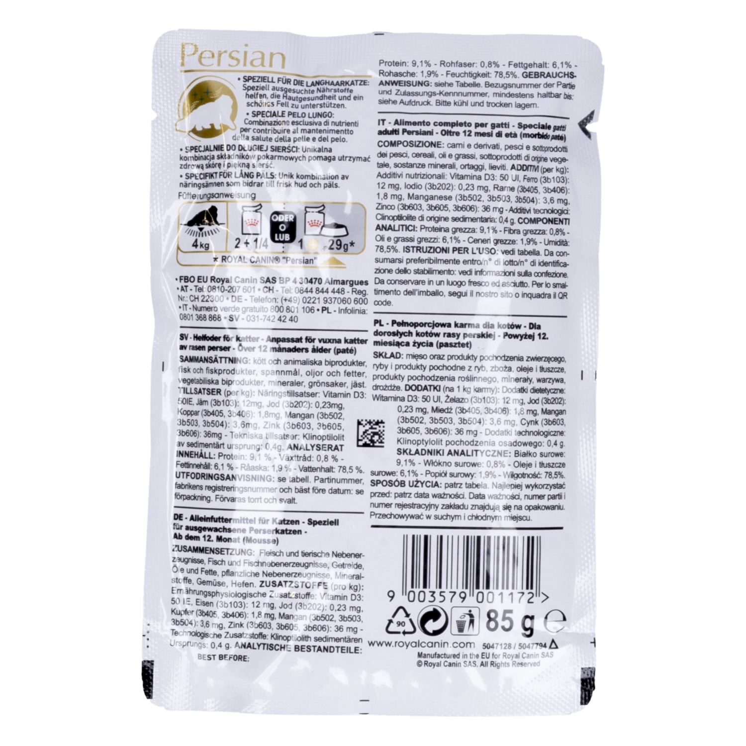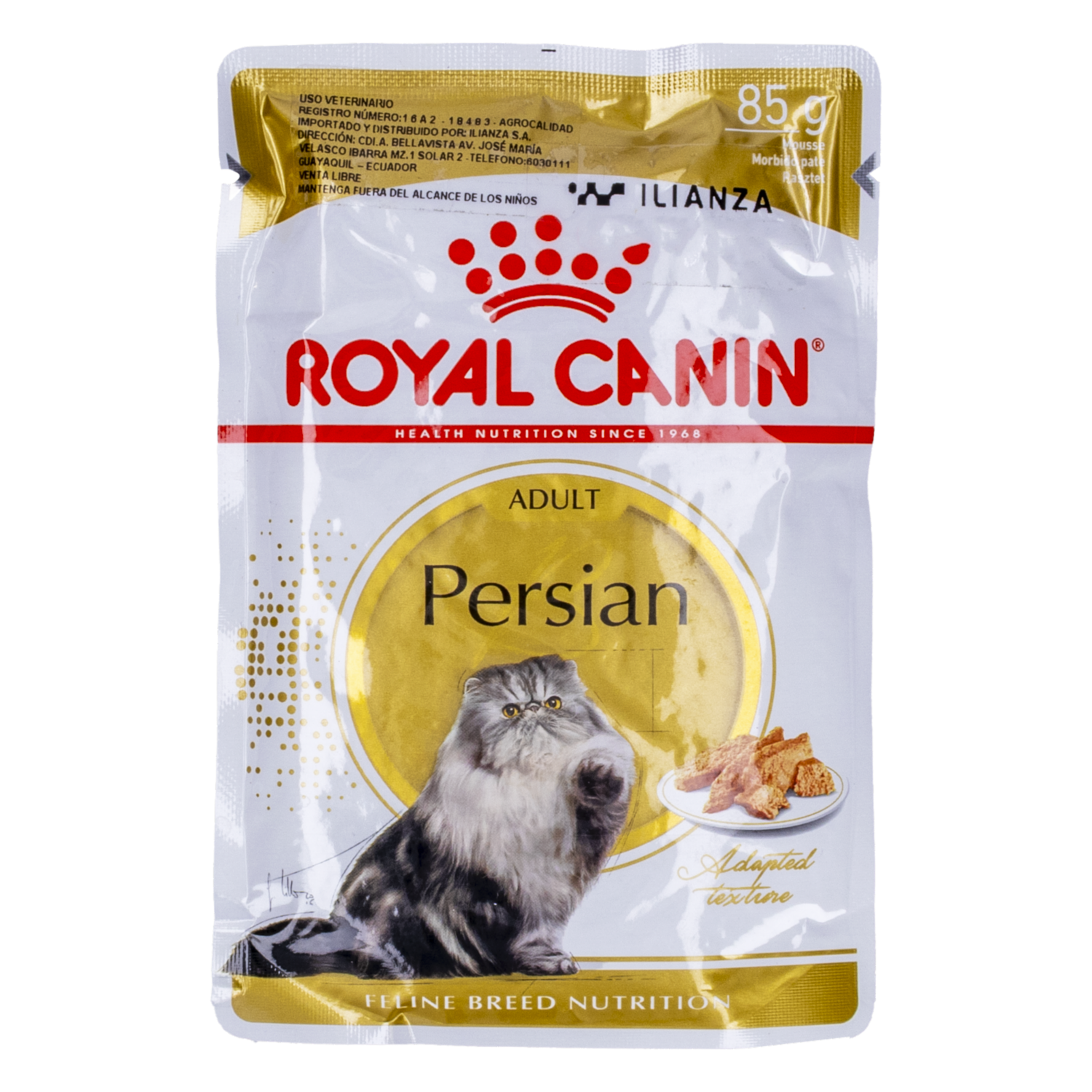 - La "Comida Para Gato Persa Adulto ROYAL CANIN 85 g" es un tipo de alimento húmedo diseñado específicamente para gatos adultos de la raza Persa