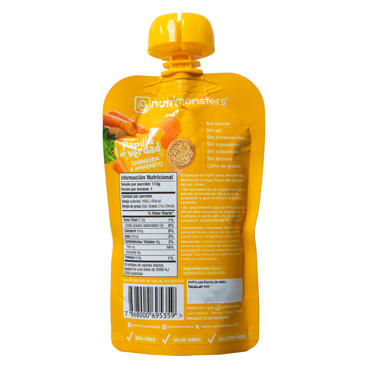 Compota Pouch Zanahoria Y Amaranto NUTRIMONSTERS 113 G