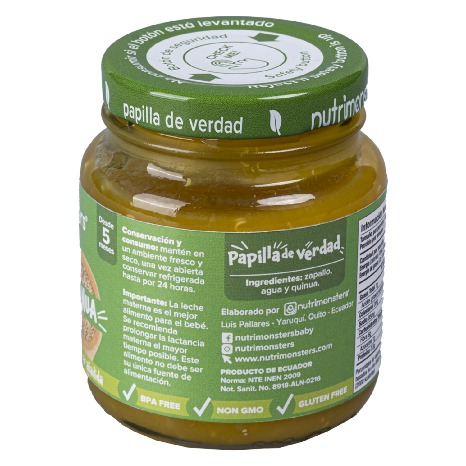 - Papilla natural de zapallo con quinua. Sin conservantes. No contiene sal ni azúcar