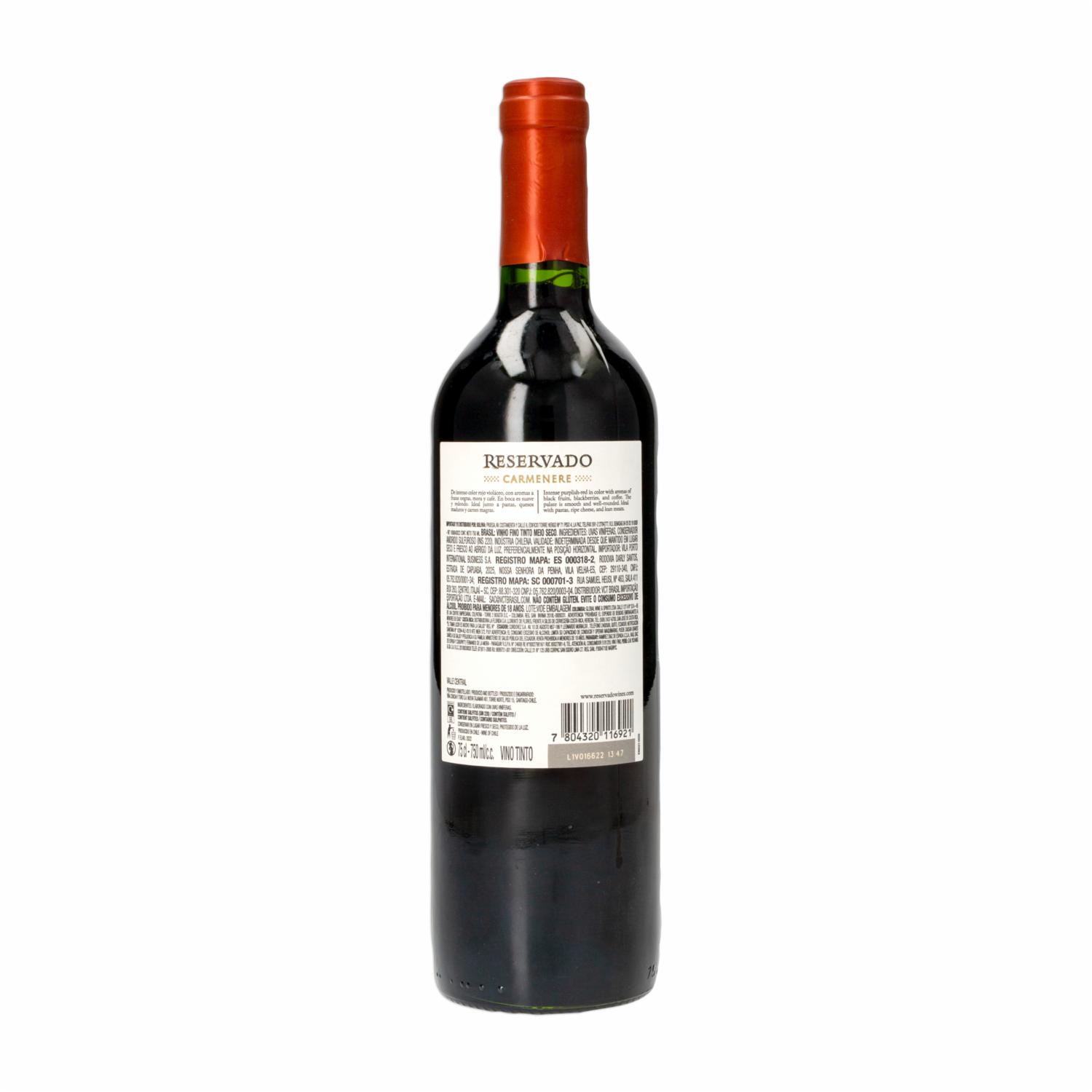 Vino Tinto Carmenere Reservado CONCHA Y TORO 750 ML