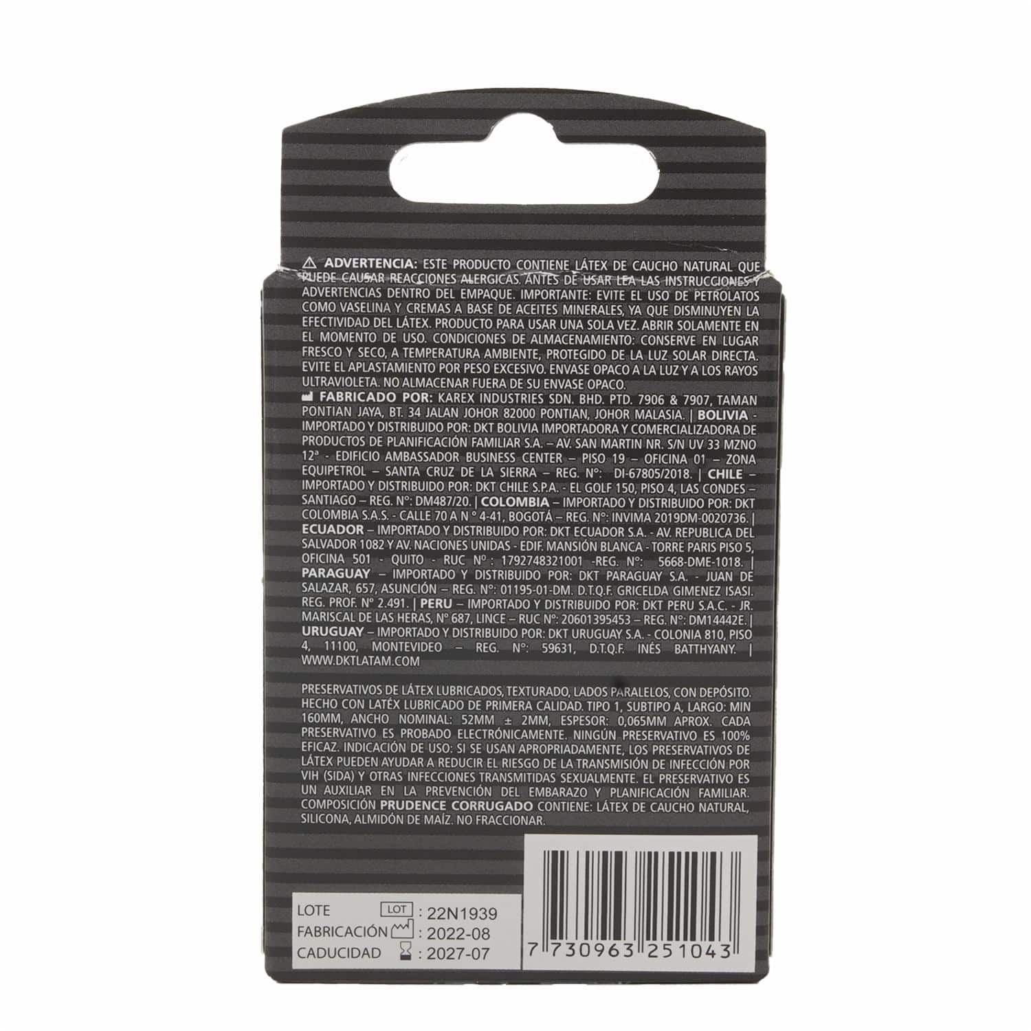 Diseñados para intensificar la experiencia, estos preservativos texturados ofrecen mayor estímulo y sensibilidad. Cuentan con depósito, lados paralelos y están lubricados para un uso cómodo y seguro