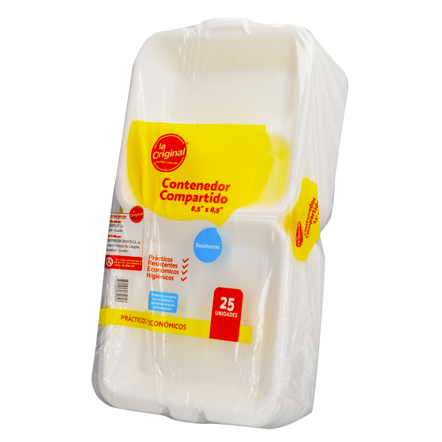 - Organiza tus comidas de manera práctica y sin complicaciones con los contenedores desechables LA ORIGINAL. Sus compartimientos mantienen los alimentos separados y frescos, perfectos para llevar almuerzos al trabajo, picnic o reuniones. Resistente y cómodo, ¡cuidar tus comidas nunca fue tan fácil!