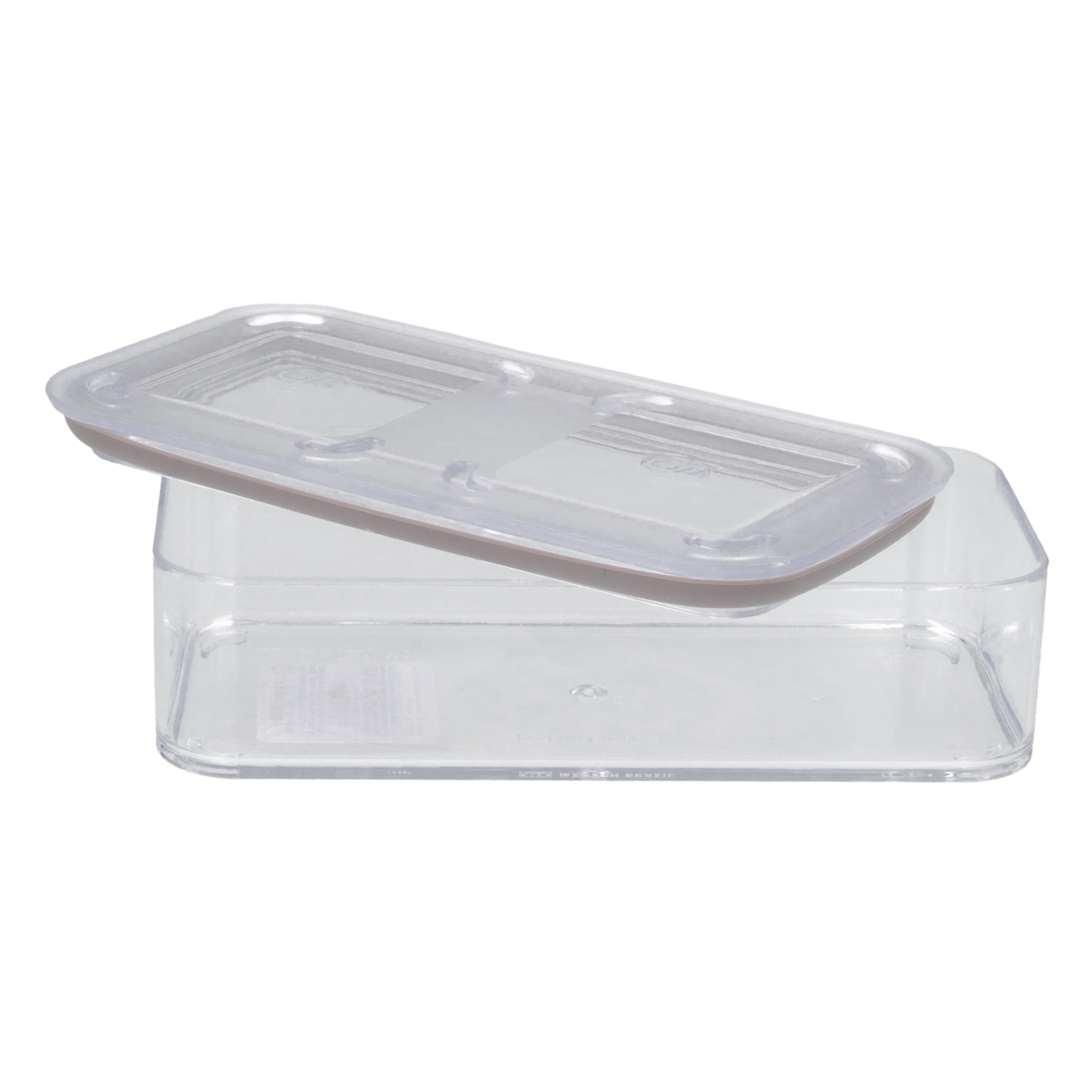 Este contenedor hermético de la línea Modo Cristal ofrece una solución práctica y elegante para almacenar alimentos de manera segura. Su cierre ajustado mantiene la frescura y protege el contenido, mientras que su diseño transparente permite identificar fácilmente lo que hay dentro. Resistente y versátil, es ideal para organizar la cocina o transportar alimentos con comodidad y estilo