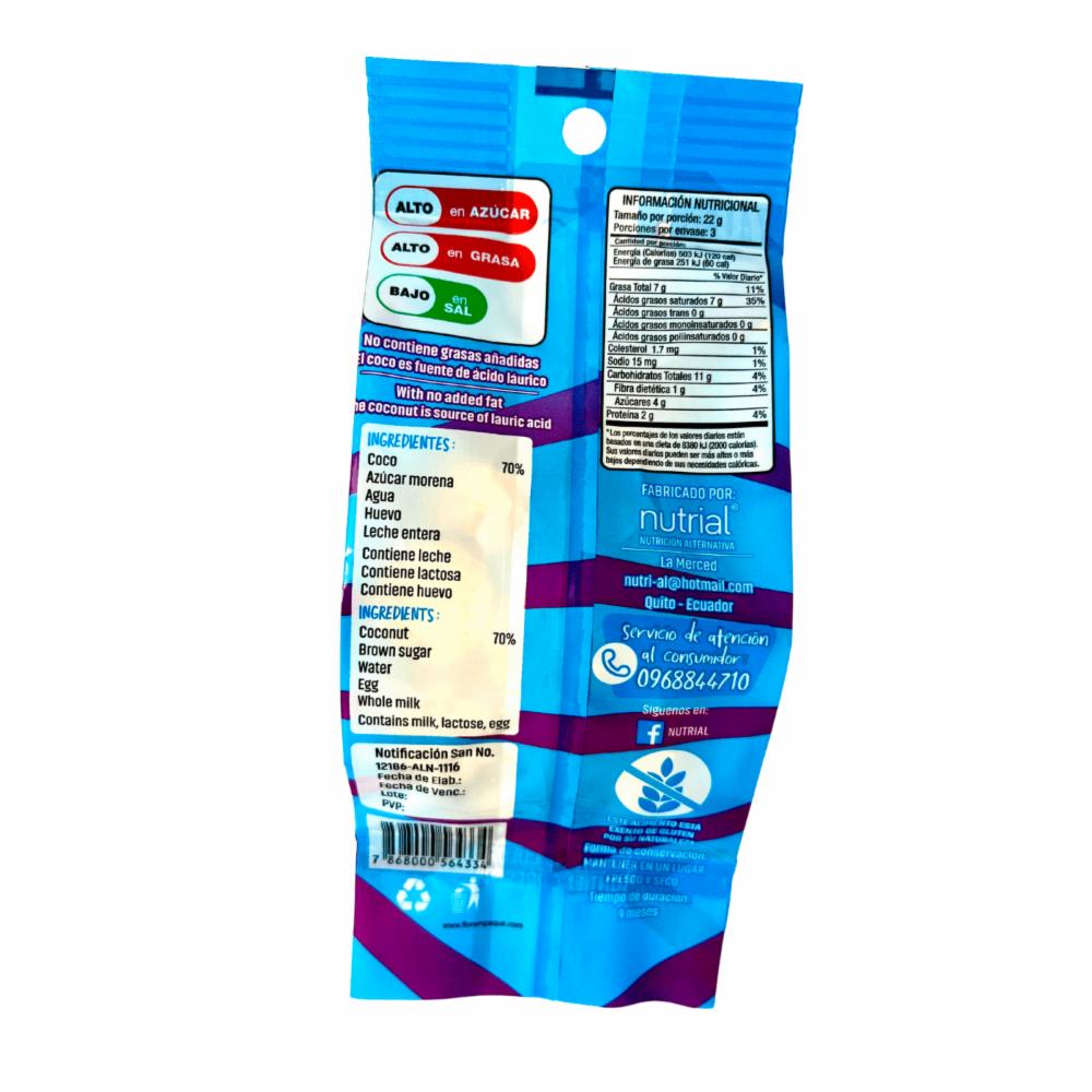 • Bocadito horneado de coco maduro y azúcar morena, sin harina. Sin gluten. Sin químicos
