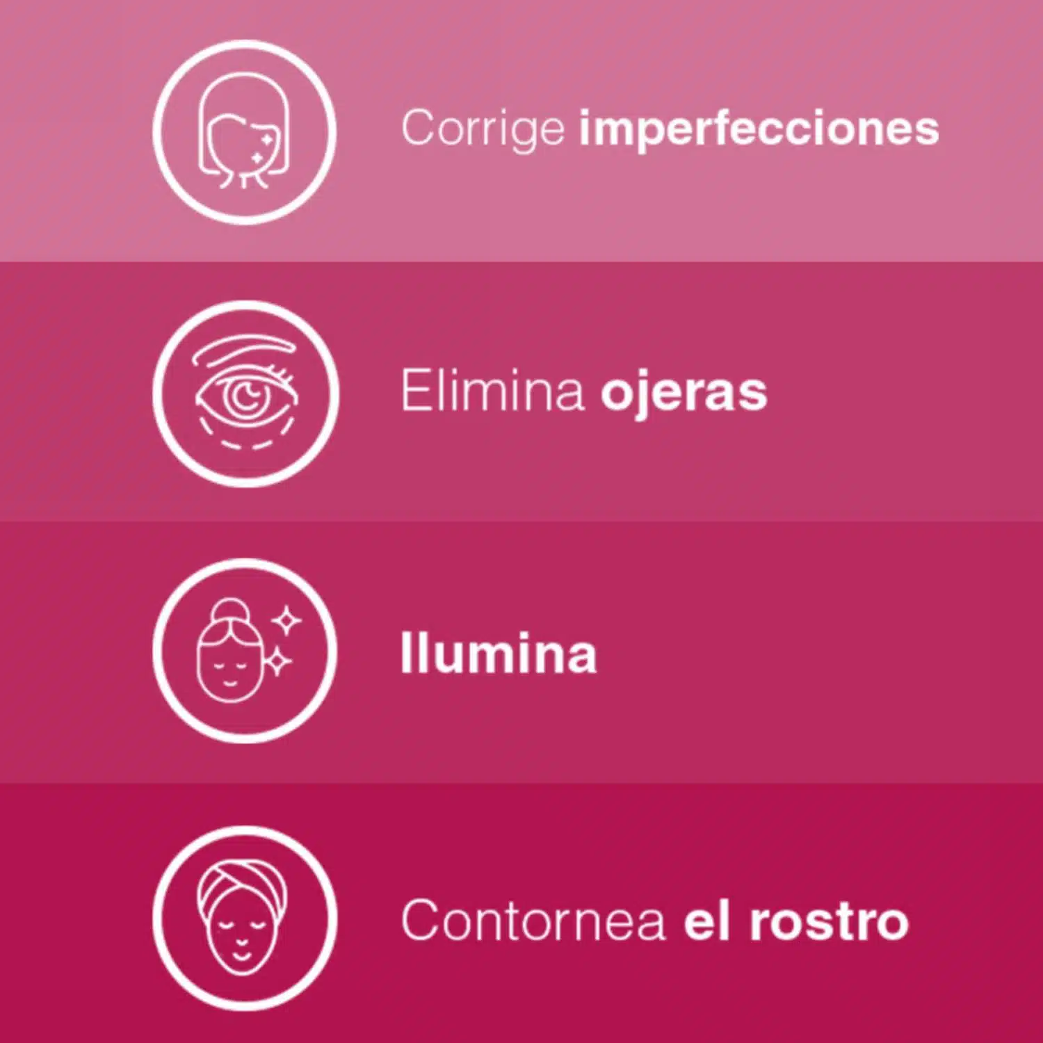 Este corrector cubre las imperfecciones dejando un aspecto natural. -Gire el aplicador de esponja en la dirección de las flechas hasta que el corrector sea visible en la esponja. -Aplica el corrector directamente en el área debajo de los ojos, difuminándolo con un movimiento hacia afuera